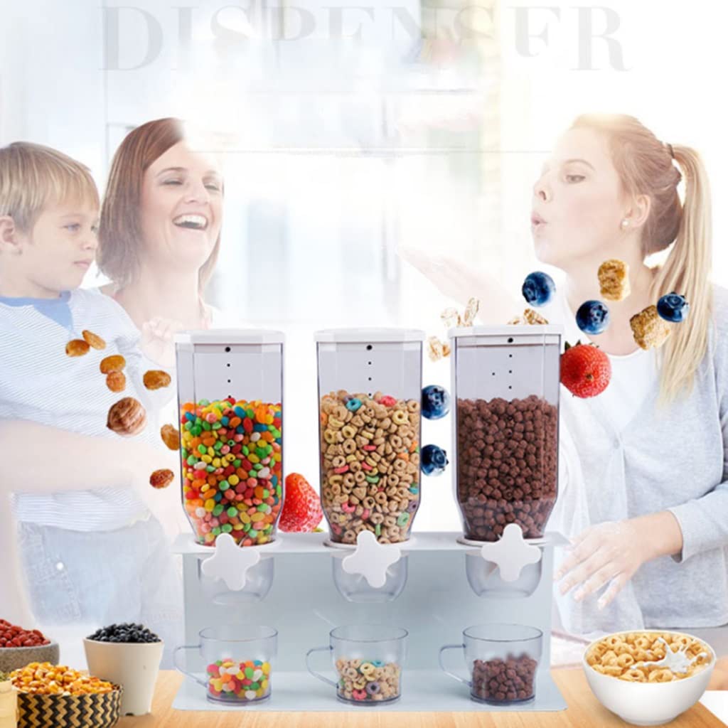 Distributeur De Céréales Triple 2 L - 3 Compartiments Avec Bec Verseur - Pour Riz, Flocons, Noix, Bonbons - Rangement Cuisine Pratique