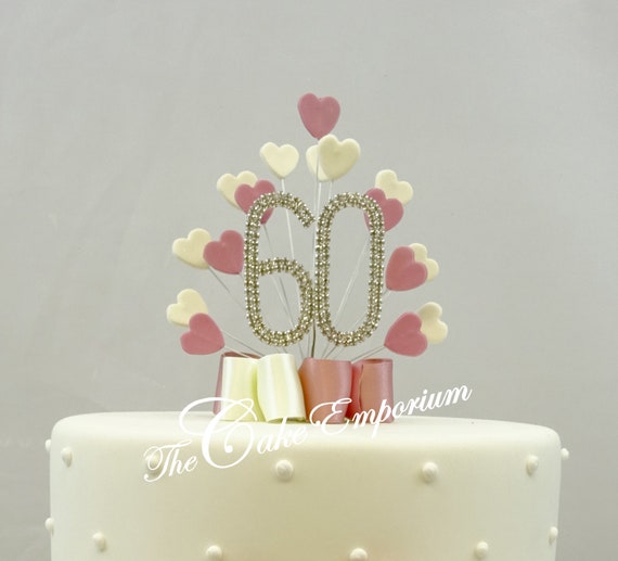 Lot 2 Décorations Réutilisables Lot De 2 Décorations Gâteau En Forme De Cœur Avec Strass - Or Et Argent Pour Mariage, Anniversaire, Saint-Valentin Décoration Gâteau Coeur