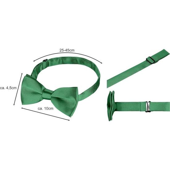 Salut les petits gentlemen ! Ce nœud papillon vert pois en polyester est parfait pour habiller votre garçon pour une occasion spéciale. Il mesure environ 6x12 cm, avec un élastique réglable pour le mettre facilement.\n\nIl est solide, ne se déforme pas et garde ses couleurs. Donne un look raffiné et frais. Idéal pour les mariages, les fêtes d'école, les spectacles, les dîners...\n\nUn accessoire simple qui change toute une tenue. Offrez-lui un style unique et élégant !