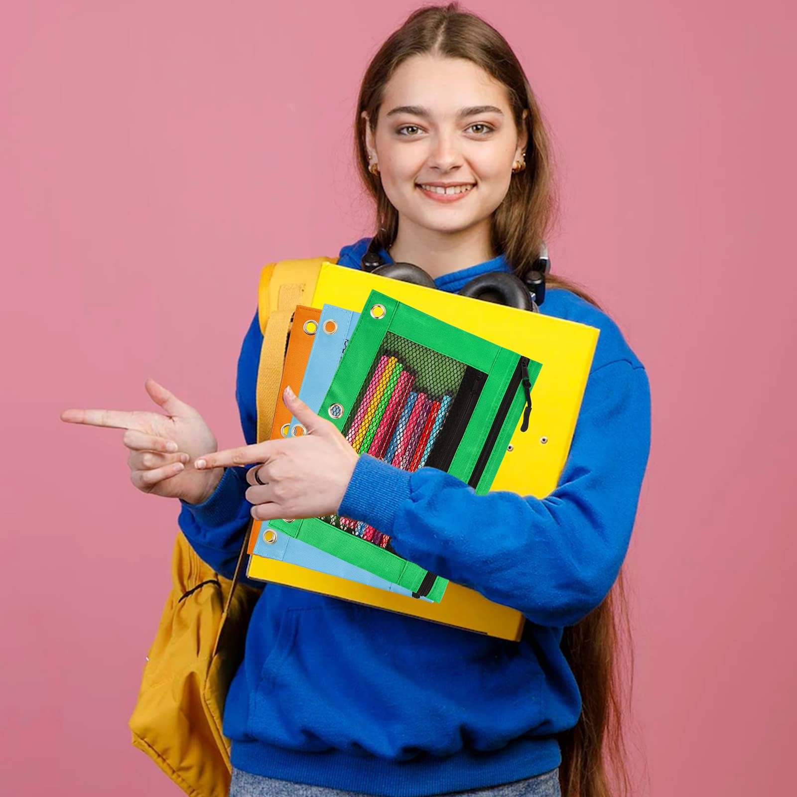 Elles sont conçues pour s'accrocher aux classeurs à 3 anneaux standards (espacement des trous : 10,8 cm). Donc, plus besoin de fouiller dans le sac : tout est bien organisé dans le classeur, à portée de main. Le tissu est en polyester résistant, avec un petit effet brillant et une texture originale type 'grille de football'. Il est même un peu résistant à l'eau, pour protéger tes affaires en cas de petit accident.