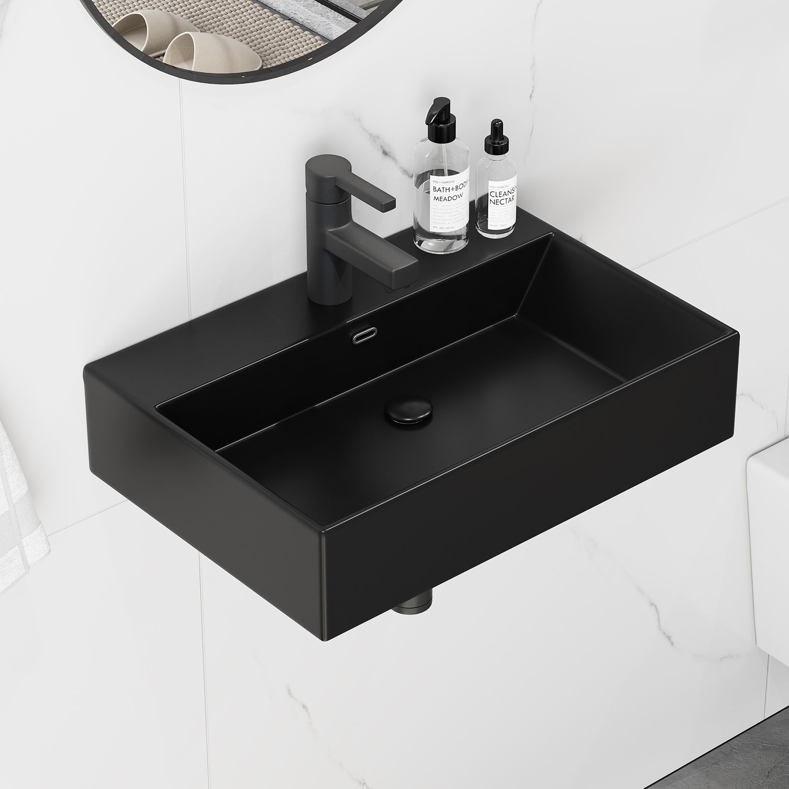 Meuble Lavabo Vasque Suspendue Céramique 40x21,5x10,5 Cm - Lavabo Salle De Bain Blanc - Sans Trop-plein - Installation Murale Lavabo Céramique Haute Température Durable