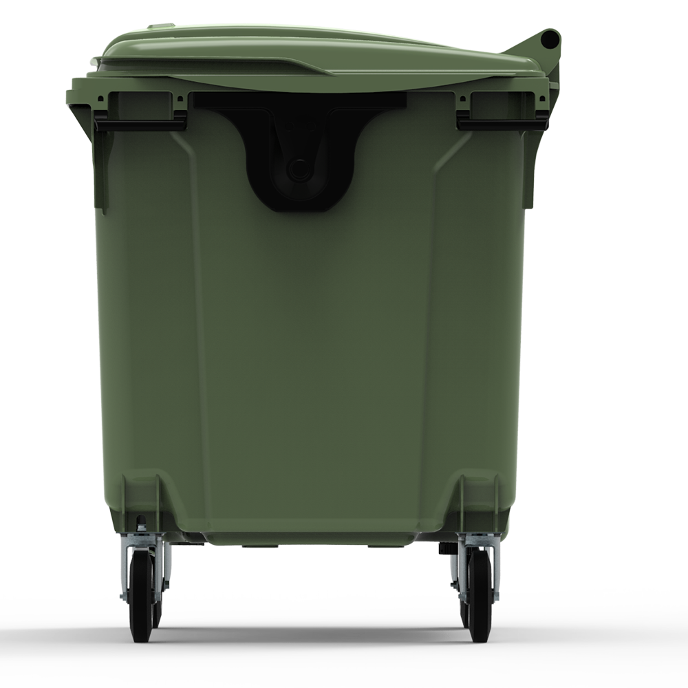 Poubelle Conteneur 1100L ESE - Couvercle Plat Vert, 4 Roues - En Plastique Recyclé, Conforme EN 840 - Pour Collecte Collective