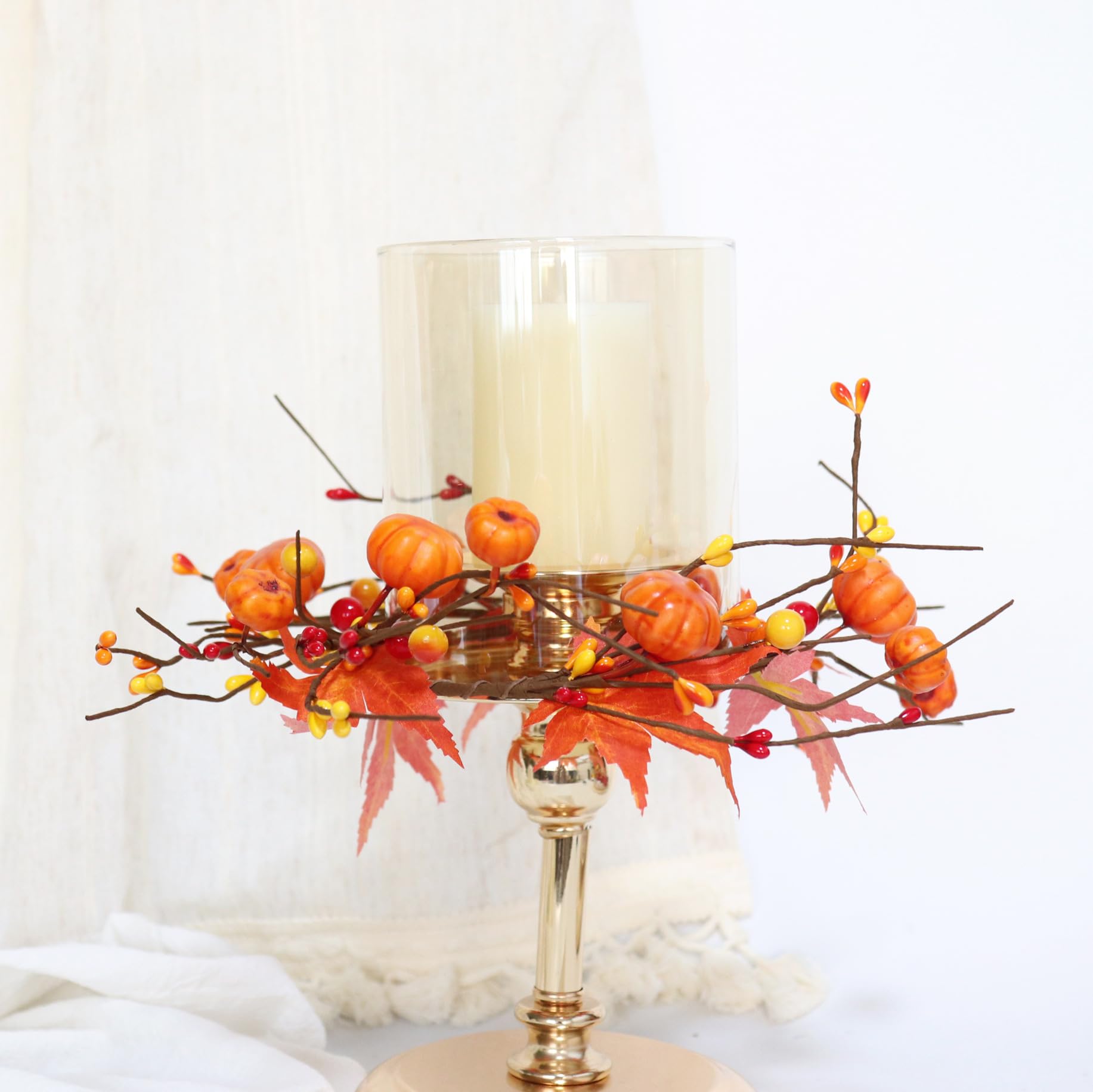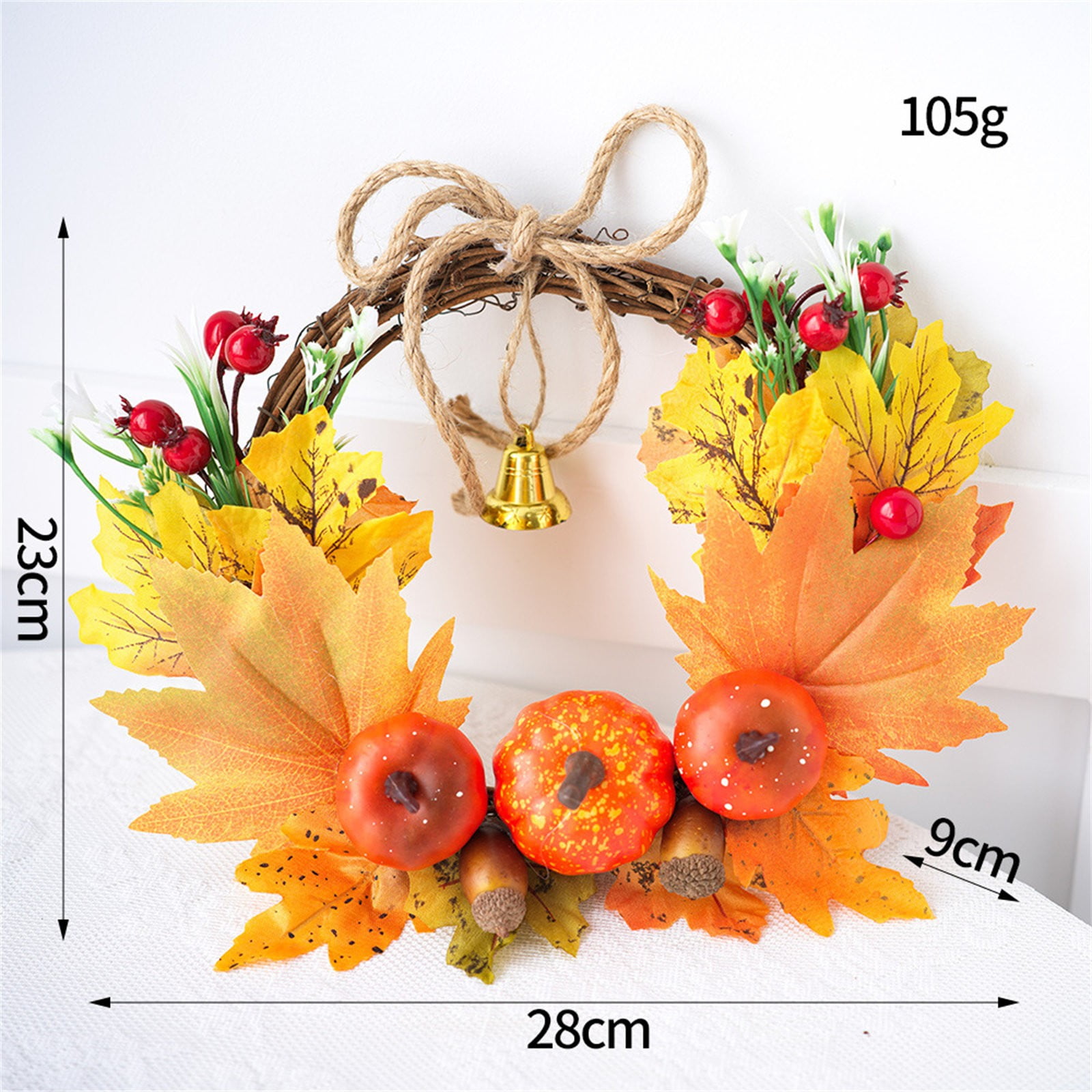 Pour créer une ambiance automnale chaleureuse sur votre table, cette petite couronne décorative est parfaite. Diamètre environ 25 cm, en matériau synthétique (PP) imitant des feuilles d'érable, des petites citrouilles et des baies rouges. Vous placez une bougie (pilier ou autre) au centre, et le tour est joué ! Idéale pour Thanksgiving, Halloween, un mariage champêtre, ou simplement pour décorer votre intérieur en octobre-novembre. La couronne est légère, réutilisable, et ne fane pas. Vous pouvez aussi l'utiliser comme centre de table sans bougie, ou la suspendre à une poignée de porte. Un accessoire pas cher qui transforme instantanément l'atmosphère. Attention : bougie non incluse. Livraison rapide, prête à égayer vos réunions de famille ou dîners entre amis.