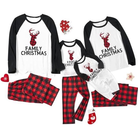 Pyjama Famille Noël Assorti - Motif Cerfs, Père Noël, Carreaux | Pour Femmes, Hommes, Enfants | Ensemble Cadeau Festif