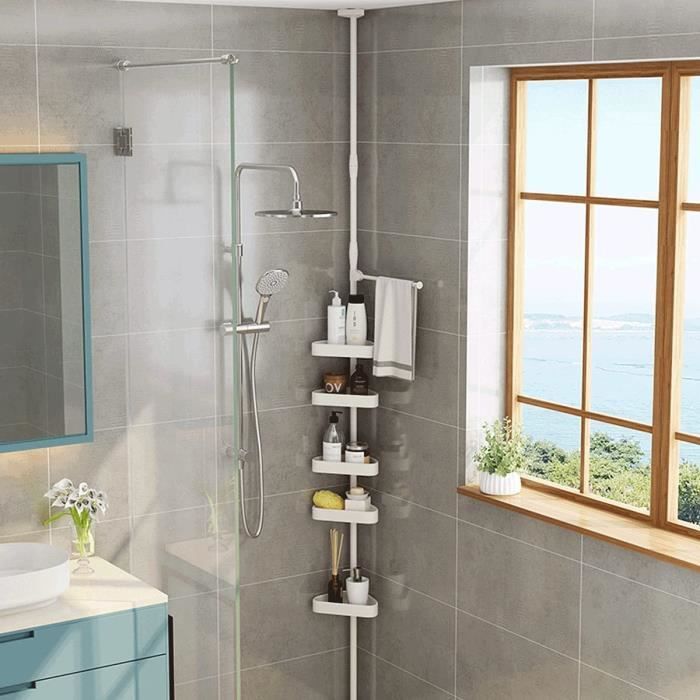 Besoin de ranger ta salle de bain sans te lancer dans des travaux ? Cette étagère de douche télescopique HANFU est la solution ultra-pratique ! Pas besoin de percer, elle s’installe en quelques minutes entre deux parois, et tu peux ajuster la hauteur de 70 à 305 cm selon ton espace. Avec ses 4 paniers triangulaires, tu peux y mettre tes shampoings, gels douche, gants… Et le porte-serviettes orientable à 360° ? Parfait pour accrocher ta serviette où tu veux. En acier inoxydable, elle résiste à l’eau et à la rouille, et chaque panier supporte jusqu’à 10 kg. Le montage est simple : tige à ressort, barres en acier, anneaux en caoutchouc… Le tout sans outils. Idéal pour gagner de la place dans un angle, avec un look épuré qui s’intègre partout. Plus de bordel dans la douche, un rangement malin qui dure !