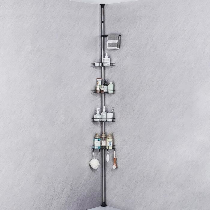 Étagère De Douche Télescopique HANFU - Support Sans Perçage Réglable 70-305cm, 4 Paniers Et Porte-serviettes, Acier Inoxydable
