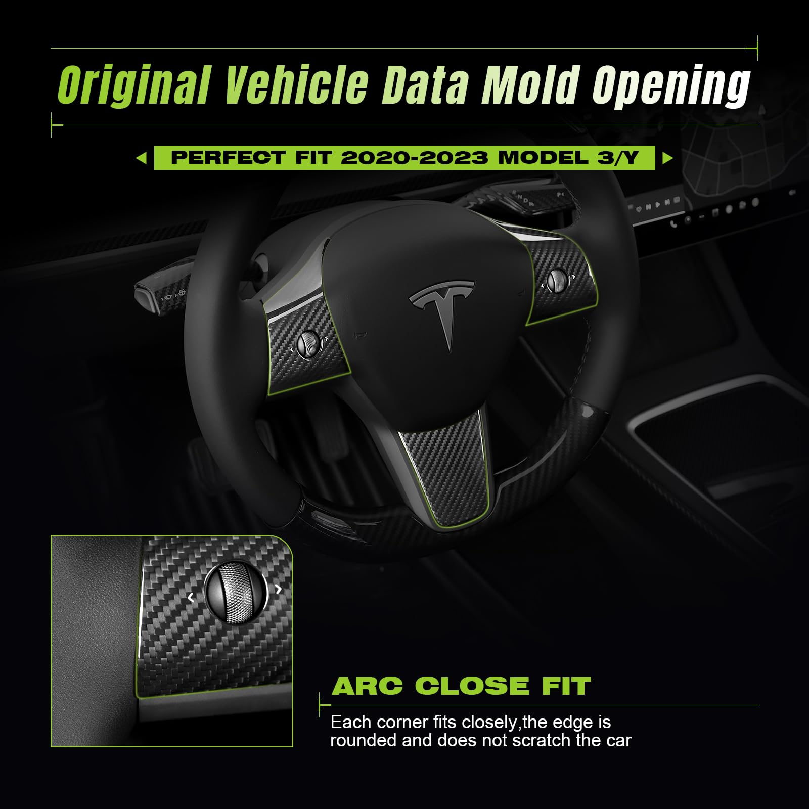 Kit Cache-Emblèmes Fibre De Carbone 3D Pour Tesla Model 3 (2023-2025) - 3 Pièces (Avant, Arrière, Volant) - Montage Facile Sans Outils