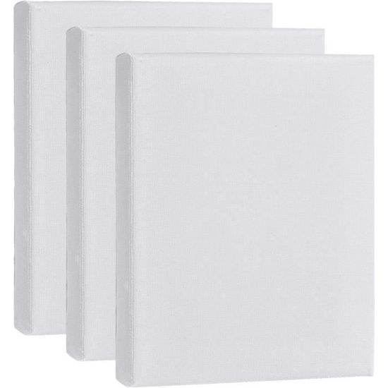 Salut les artistes ! Si vous cherchez des toiles prêtes à l'emploi, bien tendues et faciles à utiliser, ce pack de 3 toiles en coton sans acide est fait pour vous. Chaque toile mesure 20x20cm (il existe aussi le format 25x30cm) et est déjà montée sur un châssis en bois de pin de 1,5cm d'épaisseur. Le coton est apprêté avec du gesso acrylique triple couche, ce qui évite que la peinture ne traverse et que la toile ne jaunisse avec le temps. Parfait pour l'acrylique, l'huile, la gouache ou la tempera. Les bords sont agrafés à l'arrière et peuvent aussi être peints pour un rendu plus pro. Idéal pour les cours, les ateliers DIY ou pour offrir à un ami qui veut se lancer. Le coffret contient 3 toiles, vous n'avez plus qu'à sortir vos pinceaux !