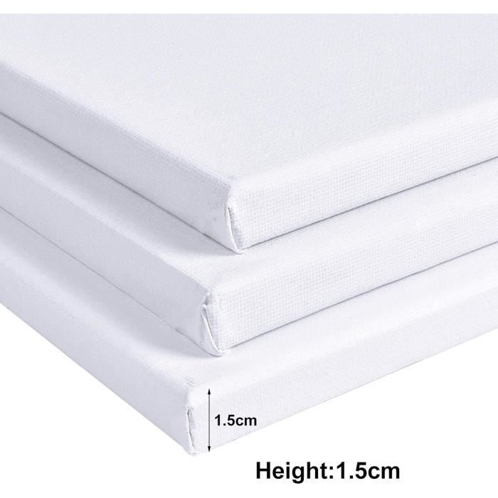 3 Toiles Blanche à Peindre Déjà Encadrées - 20x20cm - Coton Sans Acide - Idéal Pour Débutants, Peinture Acrylique Ou à L'Huile