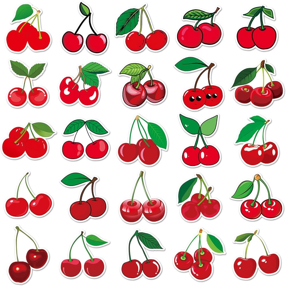 Hobbspring Lot De 240 Autocollants Cerises 90x90mm - Papier Autocollant Imperméable Pour Scrapbooking Et DIY