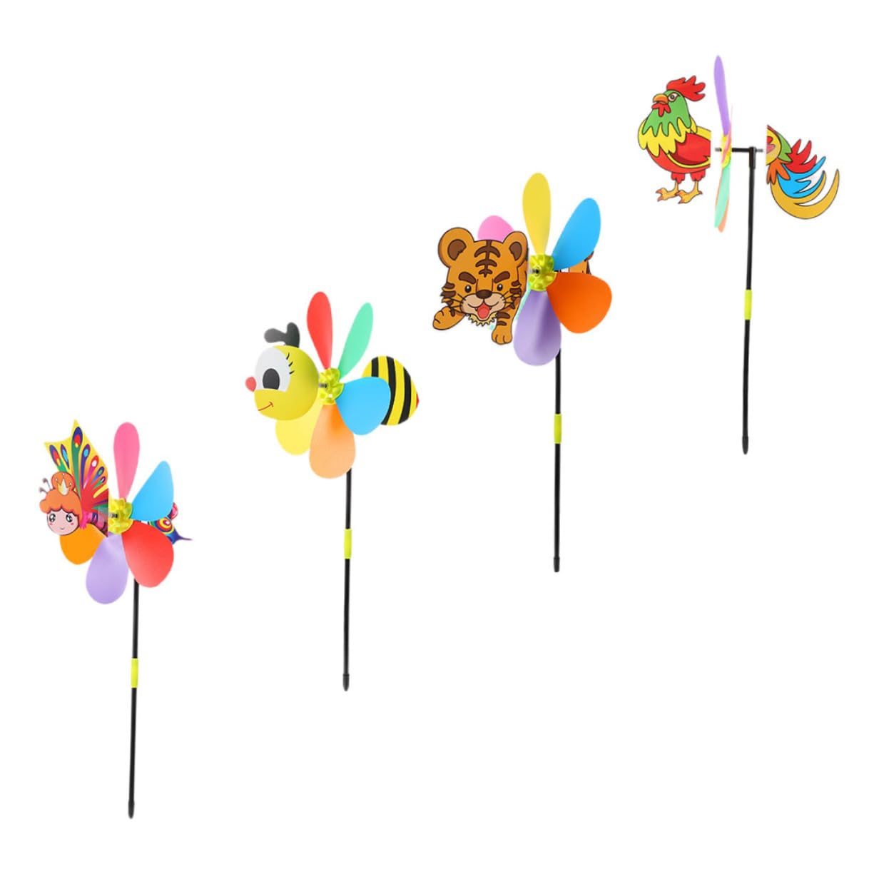 Vous voulez ajouter une touche de gaieté et de mouvement à votre extérieur ? Ces moulins à vent en forme de cœur sont parfaits pour ça !\n\nLe lot comprend 4 moulins aux couleurs assorties (rose, bleu, vert, jaune…), d'environ 50 cm de hauteur. Chacun est composé de pétales en PVC léger et résistant, montés sur une tige solide qui tourne dès que le vent souffle.\n\nLeur design en forme de cœur les rend particulièrement mignons et poétiques. Ils apportent de la vie dans un jardin, sur une terrasse, un balcon, près d'un bac à fleurs, ou même pour décorer une fête d'anniversaire ou un mariage en plein air.\n\nLes enfants adorent : ils peuvent les planter dans la terre, les tenir à la main pour courir, ou les observer tourner pendant des heures. C'est un jouet simple, sans électronique, qui éveille la curiosité et motive à sortir prendre l'air.\n\nLe PVC utilisé est résistant aux intempéries (pluie, soleil modéré), mais pour prolonger leur durée de vie, on vous conseille de les rentrer en cas de gros orage ou de tempête. Ils sont faciles à nettoyer : un coup de chiffon humide suffit.\n\nInstallation ultra simple : enfoncez la tige pointue dans la terre, dans un pot de fleurs, ou fixez-la sur un support avec un peu de pâte à modeler ou de mastic. Aucun outil nécessaire.\n\nIdéals pour :\n🎈 Décorer un jardin d'enfants, une école, une crèche.\n🎈 Animer un stand de kermesse ou une fête de quartier.\n🎈 Offrir en cadeau petit prix à un enfant qui aime le bricolage et la nature.\n🎈 Ajouter une note colorée à un coin de verdure un peu terne.\n\nUn conseil : pour une rotation fluide, assurez-vous que les moulins ne soient pas trop serrés à la base. Et si le vent est faible, vous pouvez souffler doucement dessus – les enfants adorent ce petit jeu !\n\nUne décoration joyeuse, économique, qui plaît à tous les âges. Votre extérieur va devenir vivant et plein de charme.