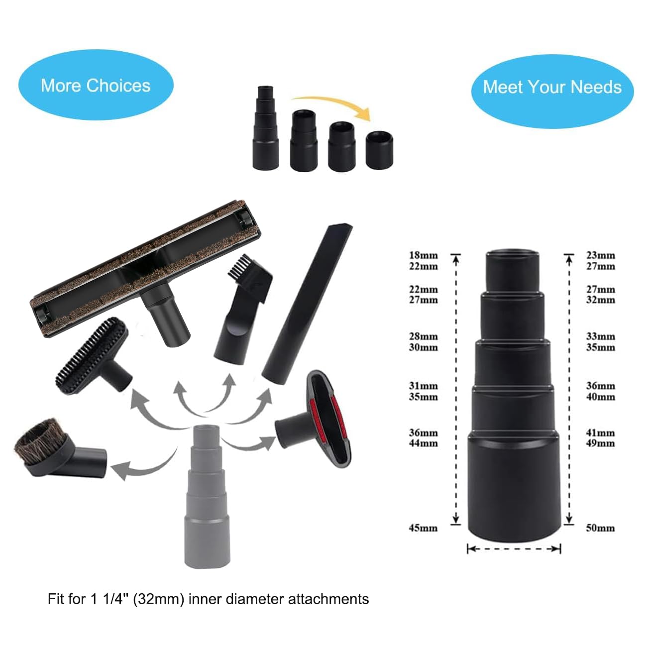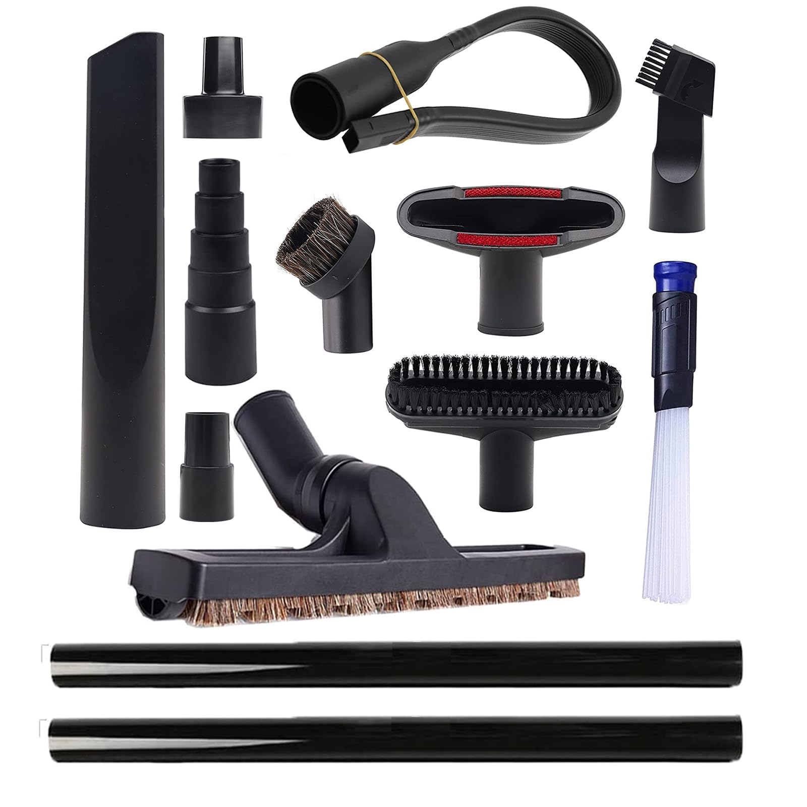 Ton aspirateur manque d'accessoires pour nettoyer les coins étroits ? Ce kit 5 en 1 est la solution ! Il comprend : une brosse plate amovible pour dépoussiérer (14 x 4.55 cm), une longue succion plate (environ 20 cm), une brosse ronde (diamètre 6.2 cm), une brosse plate flexible réglable et un adaptateur de connexion universel. Les adaptateurs s'adaptent aux tuyaux de 3.8 cm et 4.8 cm, donc compatible avec la plupart des aspirateurs électriques. Parfait pour nettoyer les rails de fenêtre, le canapé, les sièges de voiture, les lits, les placards et autres recoins inaccessibles. En plastique PP léger et résistant, elles sont faciles à monter et à nettoyer. Un must-have pour un nettoyage en profondeur sans se ruiner en pièces d'origine. Ta maison va briller !