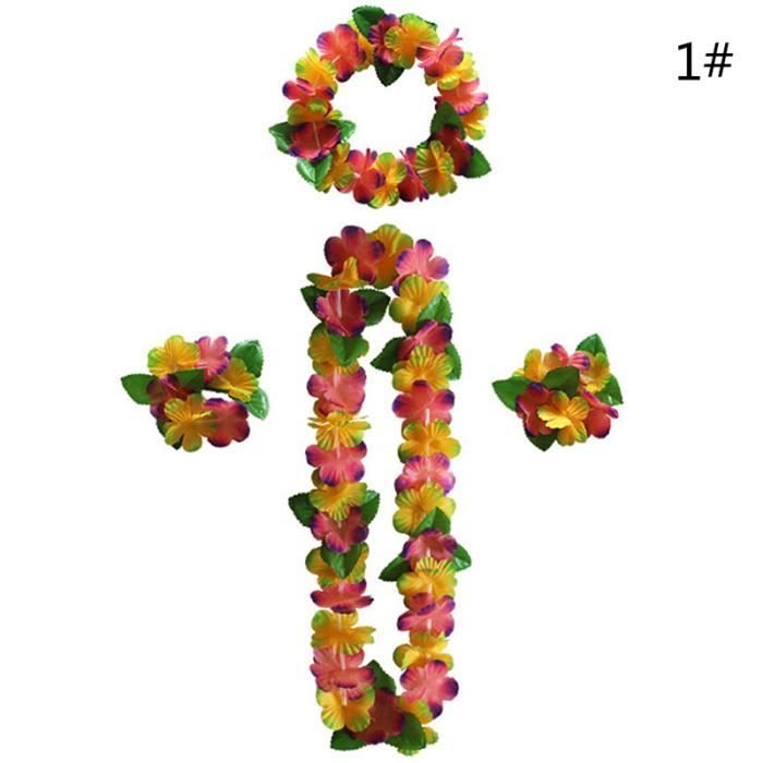 Guirlande Fleur Artificielle 5 Colliers Hawaïens Fleuris Pour Vos Fêtes Tropicales – Guirlande Lei Luau Noir, Rouge, Jaune – 105 Cm Décorations Thème Tropical