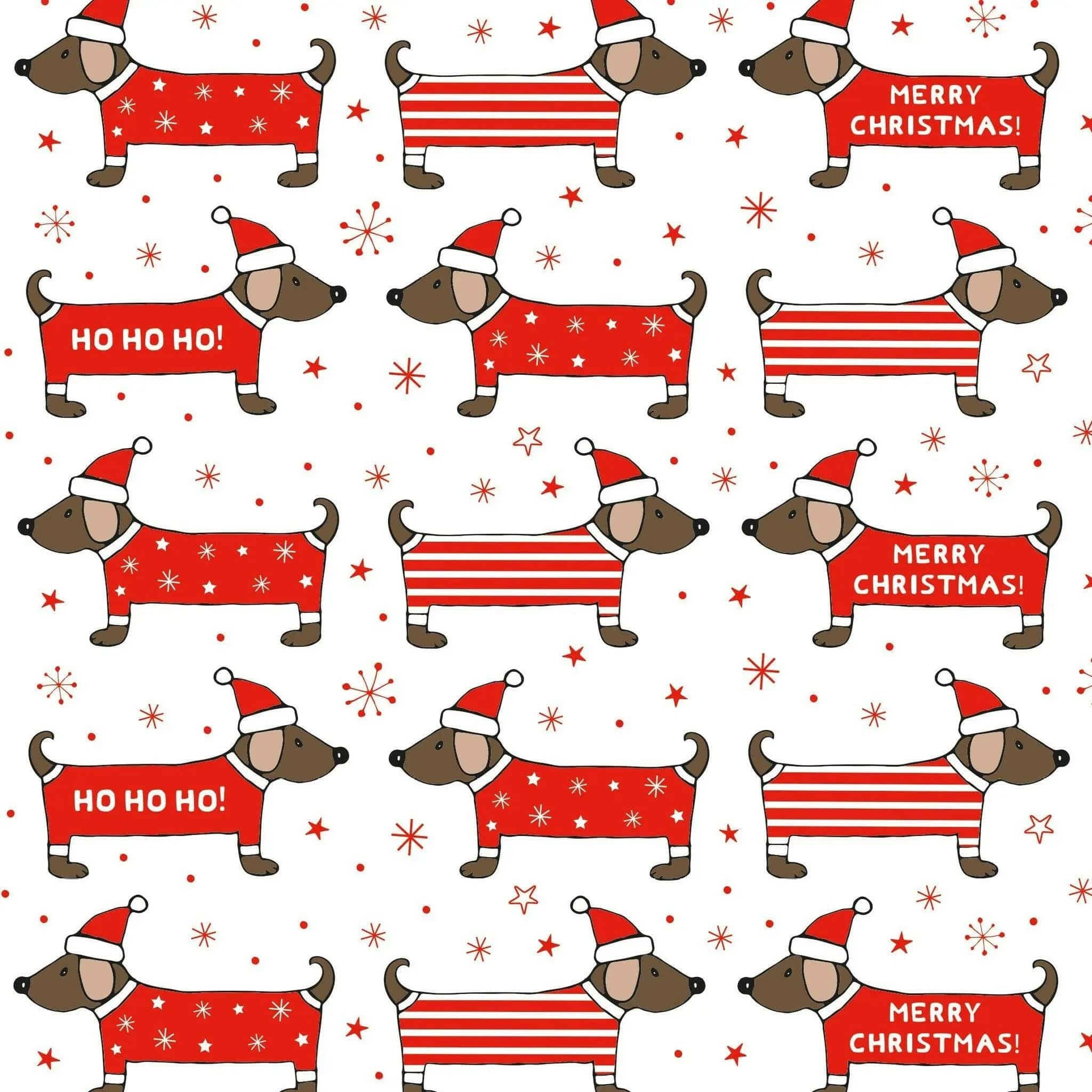 Motif Chien De Noël Papier Cadeau Noël Motif Teckel - Rouleau 43,2 Cm X 5 M - Papier Durable, Facile à Découper, Pour Petits Et Moyens Paquets Papier Cadeau Motif Chien