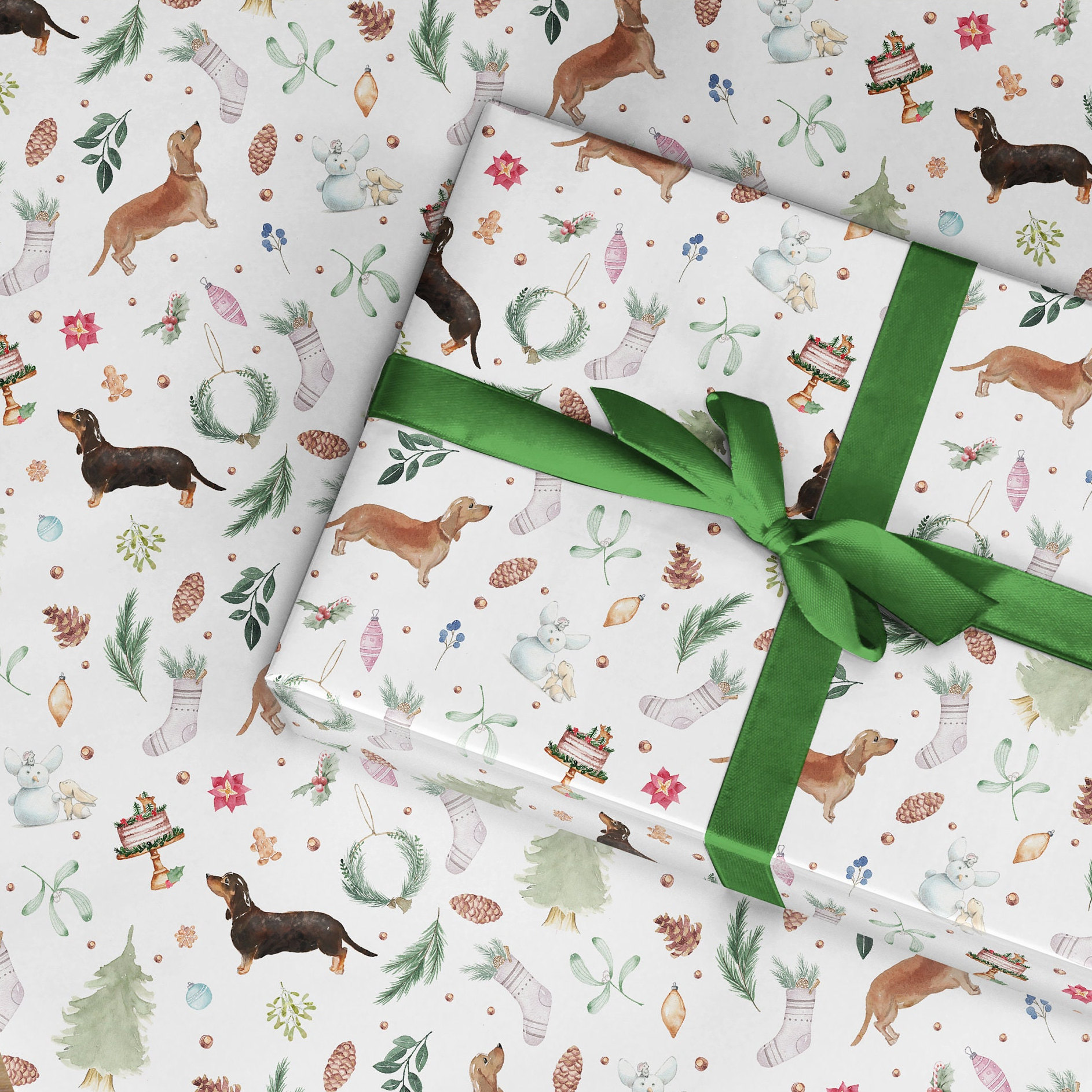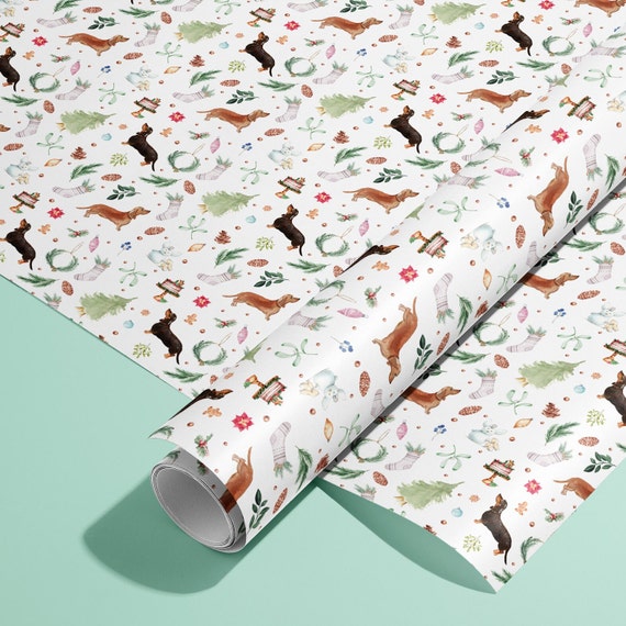 Papier Cadeau Noël Motif Teckel - Rouleau 43,2 Cm X 5 M - Papier Durable, Facile à Découper, Pour Petits Et Moyens Paquets