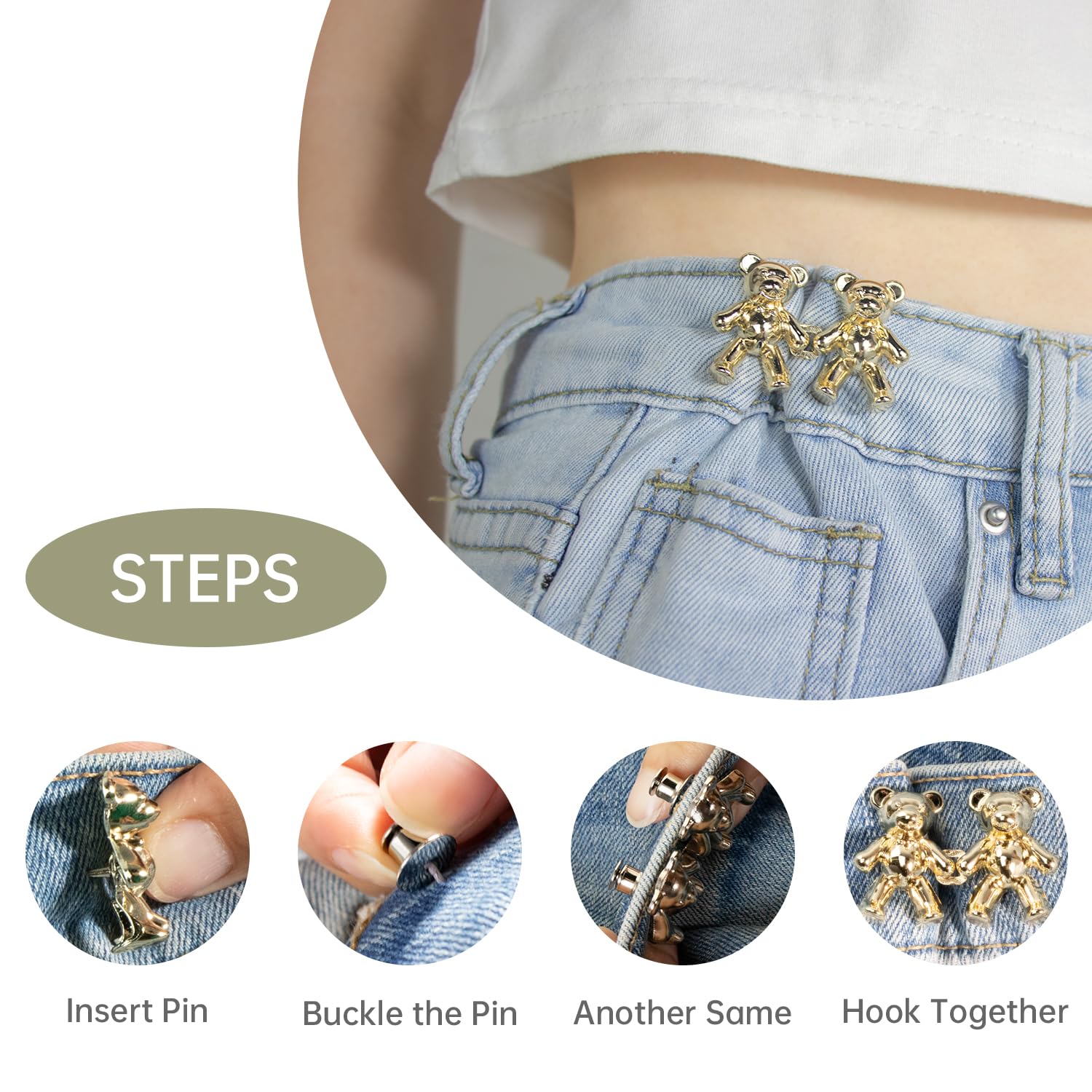 12 Clips Serre-taille Métalliques Pour Pantalons Et Jupes - 4 Couleurs (or Rose, Or, Argent, Noir)