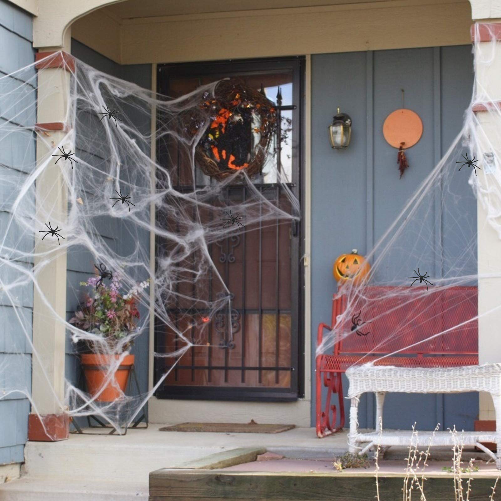Facile à Installer Façades Buissons Toile D'araignée Halloween 200g Avec 40 Araignées - Extensible, Pour Intérieur Et Extérieur - Couvre Jusqu'à 700 M² Toile Extensible Avec Araignées