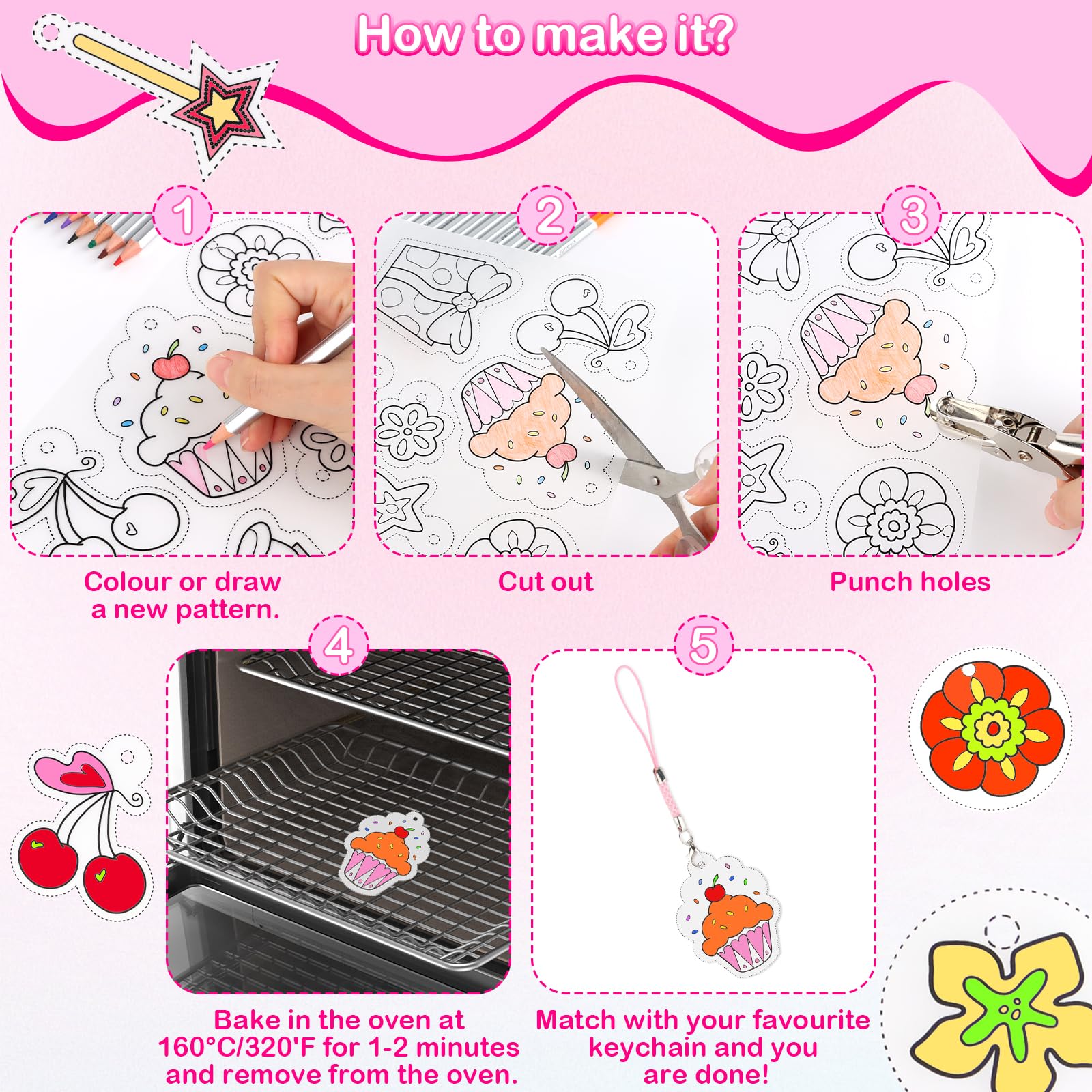 Création Bijoux Porte-clés DIY Kit De Feuilles Thermorétractables 182 Pièces - Papier Magique, Perforatrice, Crayons, Accessoires Pour Porte-clés Et Bijoux DIY Activité Manuelle Enfant Parent