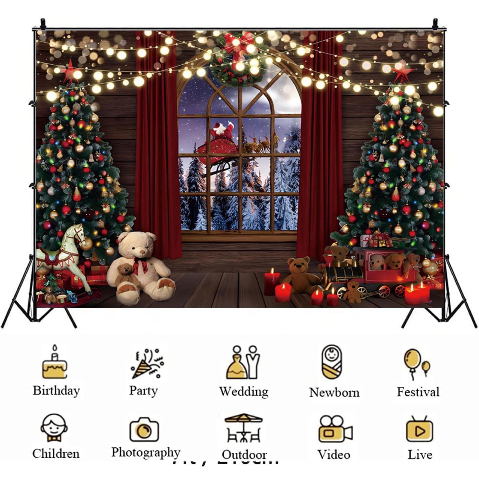 C'est bientôt Noël et vous voulez des photos de famille magiques ? Cette toile de fond est exactement ce qu'il vous faut ! Elle mesure 2,1 m x 1,5 m (environ 7x5 pieds), une taille parfaite pour des portraits individuels, de couple ou de petite famille. Le design est super mignon avec un sapin de Noël décoré de guirlandes, dans des tons hivernaux qui donnent tout de suite l'ambiance des fêtes. Elle est imprimée en haute résolution sur un tissu en vinyle fin et léger, donc les détails sont nets et les couleurs vives. C'est un fond professionnel non réfléchissant, ce qui est top pour la photo. Comment l'utiliser ? Vous pouvez l'accrocher au mur avec du ruban adhésif fort ou des clous, ou bien l'attacher à un support de fond photo avec des pinces (non inclus). Petite précision : pour des raisons postales, elle est livrée pliée. Pas de panique ! Pour enlever les plis, vous pouvez soit la rouler serrée autour d'un tube pendant quelques jours, soit la suspendre et la laisser pendre, soit repasser légèrement l'ENVERS avec un fer à vapeur (pas de fer chaud direct !). Parfaite pour les séances photo de Noël, les fêtes, les vidéos YouTube, les décorations de baby shower ou d'anniversaire. Livrée sans support. Faites-nous confiance, vos photos vont faire un carton sur les réseaux sociaux !