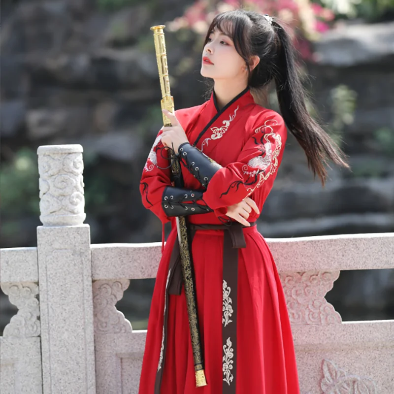 Robe Hanfu Grande Taille 4XL Femme - Style Chinois Vintage Brodé Noir Et Rouge - Tenue De Soirée, Costume Traditionnel