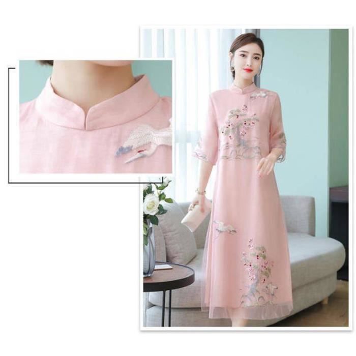 Robe Chinoise Traditionnelle Vintage Robe Hanfu Grande Taille 4XL Femme - Style Chinois Vintage Brodé Noir Et Rouge - Tenue De Soirée, Costume Traditionnel Robe Chinoise Vintage Brodée