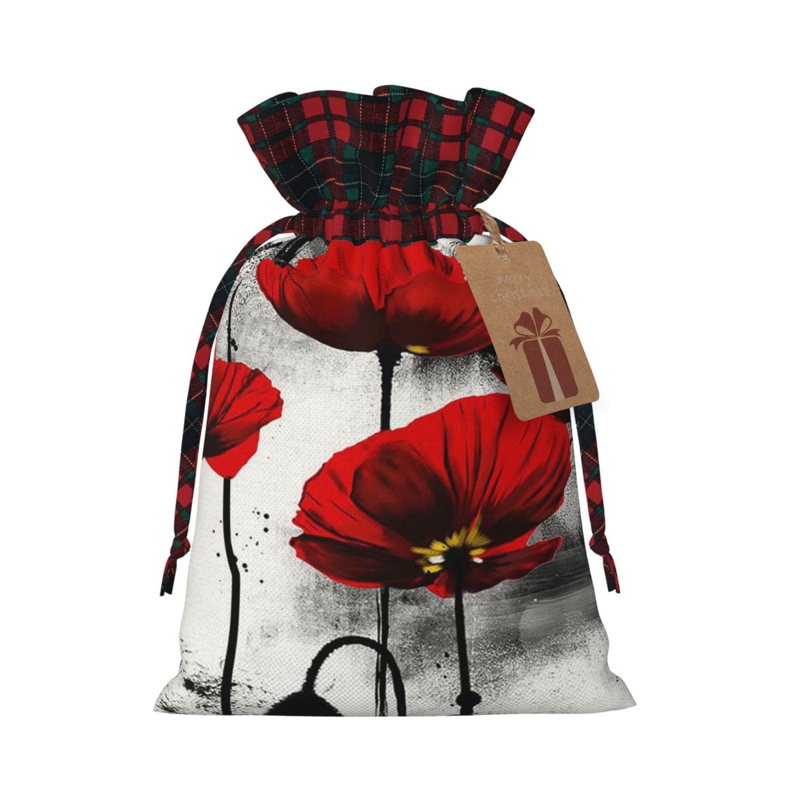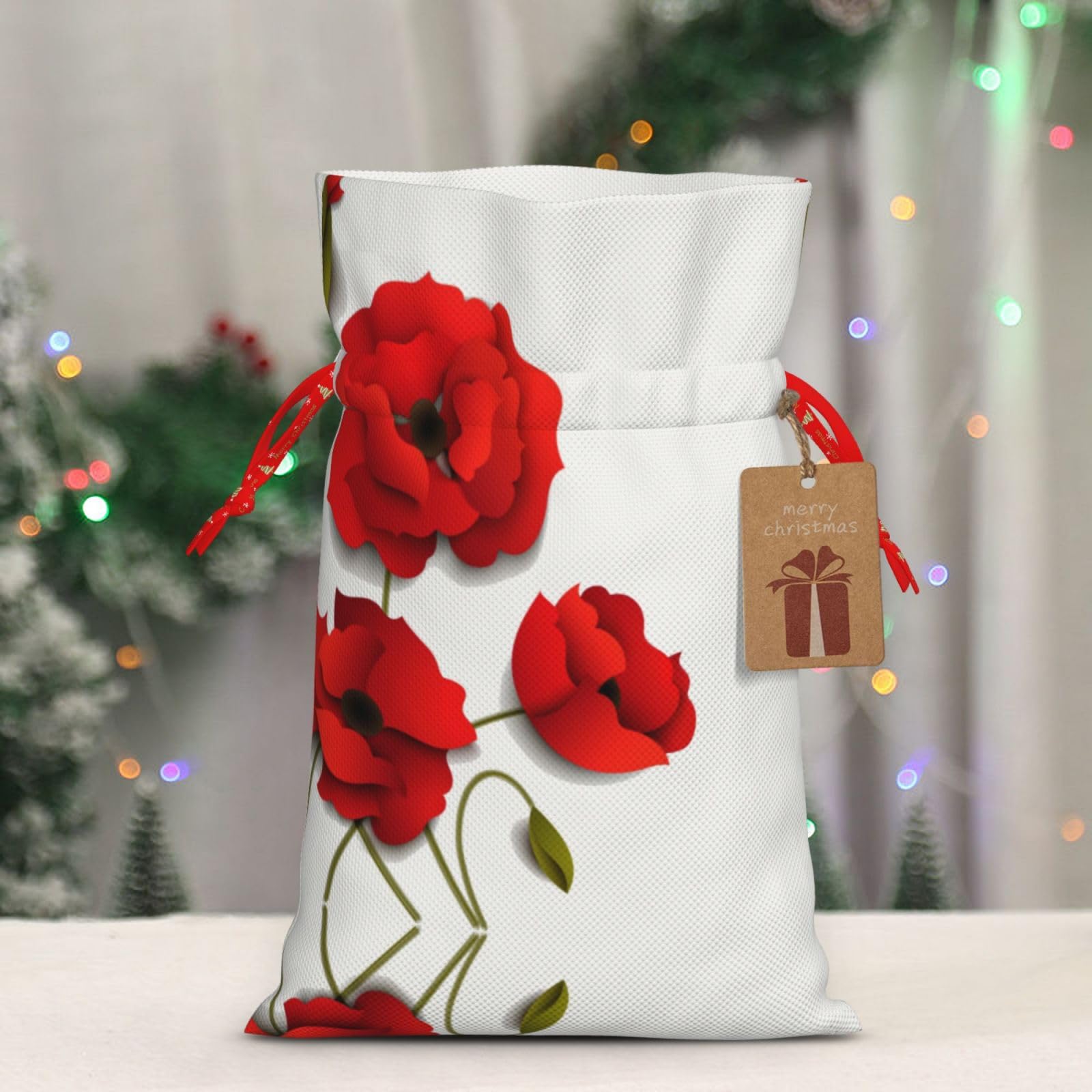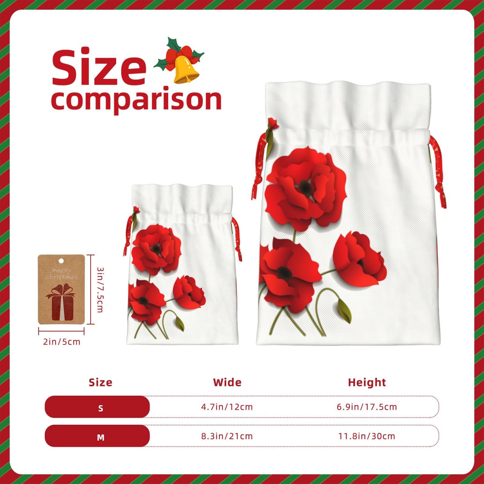 Sac Cadeau Avec Cordon – Imprimé Coquelicot, Tissu Polyester, 2 Tailles (S/M), Idéal Noël, Anniversaire, Fête