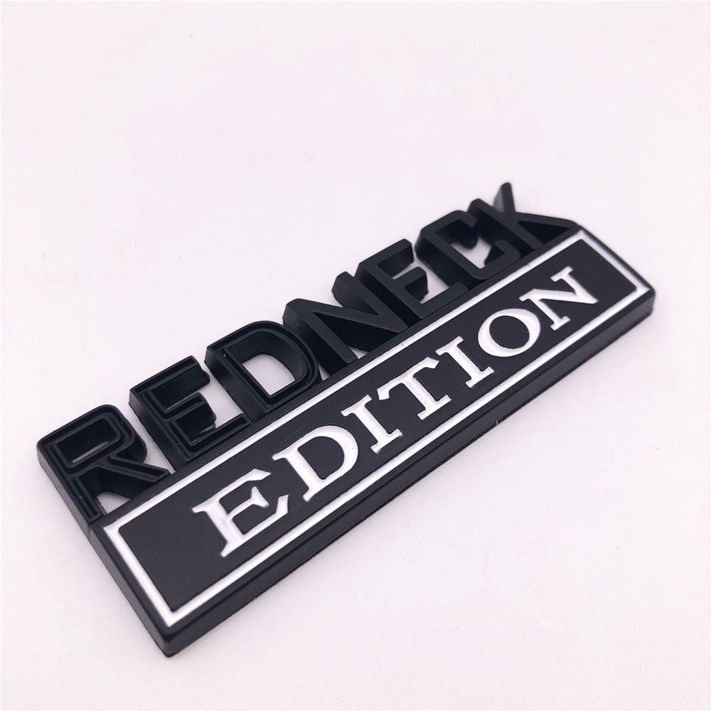 Donnez un style affirmé et humoristique à votre véhicule avec cet autocollant métal \Redneck Edition\ ! Ce badge en relief 3D, aux couleurs noir et rouge, mesure 80 mm de large sur 30 mm de haut. Fabriqué en métal peint de qualité, il a un look robuste et premium. Au dos, un adhésif puissant et permanent permet une installation simple et rapide : nettoyez la surface (pare-chocs, hayon, porte, garde-boue...), assurez-vous qu'elle est plate et sèche, retirez le film protecteur et pressez fermement. Idéal pour personnaliser votre pick-up, 4x4, camionnette, voiture américaine ou même une moto. Le terme \Redneck\ est un clin d'œil à la culture country et rurale américaine. C'est une décoration extérieure qui ne passe pas inaperçue et montre votre personnalité. Livré en un seul exemplaire. Un petit accessoire qui fait une grande différence sur l'apparence de votre bolide !