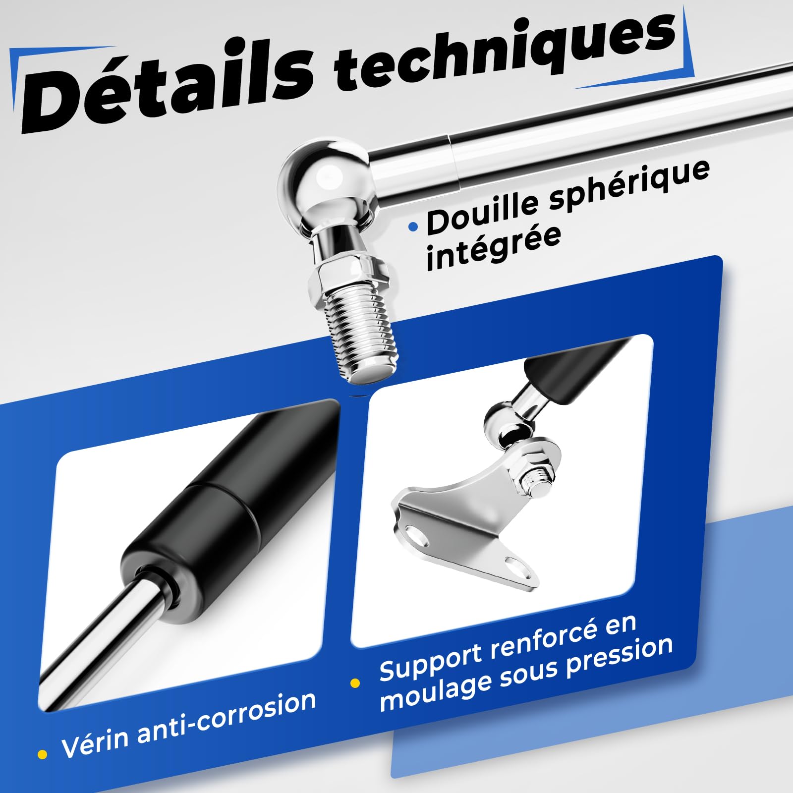 Idéals pour les bricoleurs qui veulent monter un lit escamotable dans un camping-car, un lit de bateau, une trappe à poubelle, etc. La marque offre une garantie de 18 mois, un support technique à vie, et un manuel d'installation en PDF. Si la force tombe en dessous de 85%, ils les remplacent. Un produit sérieux pour vos projets DIY un peu costauds !