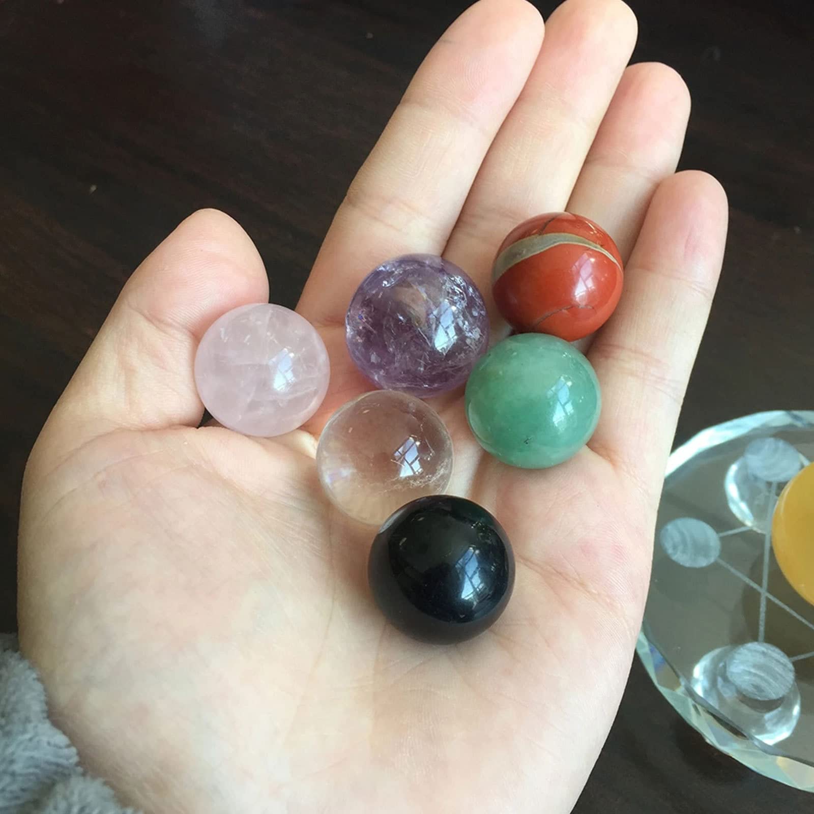 Découvrez ce set complet de 7 boules en cristal naturel, chacune associée à un chakra spécifique : améthyste, quartz rose, jade rouge, aventurine verte, obsidienne noire, cristal clair et citrine. Parfaites pour harmoniser votre aura, ces pierres émettent des vibrations positives et aident à nettoyer les énergies autour de vous. Idéal pour la méditation, le yoga, le Reiki ou même la décoration Feng Shui.