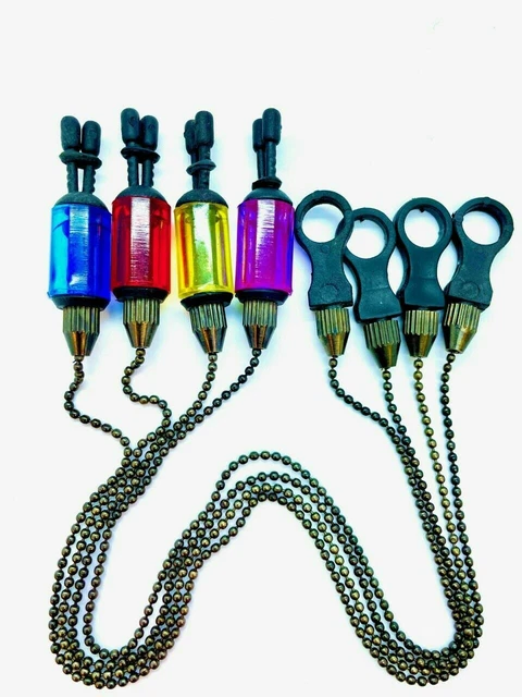 Si tu es un passionné de pêche à la carpe, ces indicateurs de touche à chaîne semi-courte vont t'être super utiles ! Le lot comprend 3 bobines avec une chaîne d'environ 15 cm de long (finition plaquée noire). Tu peux choisir parmi 6 couleurs semi-transparentes : bleu, rouge, blanc, vert, violet, jaune – ou prendre un mélange de 3 couleurs. Chaque bobine mesure 56 mm de long et peut accueillir un isotope standard de 3 mm x 25 mm (ou plus petit). Poids total avec la chaîne : environ 17 g. Elles sont fournies avec une fixation pour pattes de chien, donc tu peux les monter facilement sur tes détecteurs ou tes cannes. C'est un accessoire simple mais efficace pour mieux voir les touches, surtout en pêche de nuit ou par faible luminosité. Solide, fiable et pas cher – un must-have dans ta boîte à pêche !