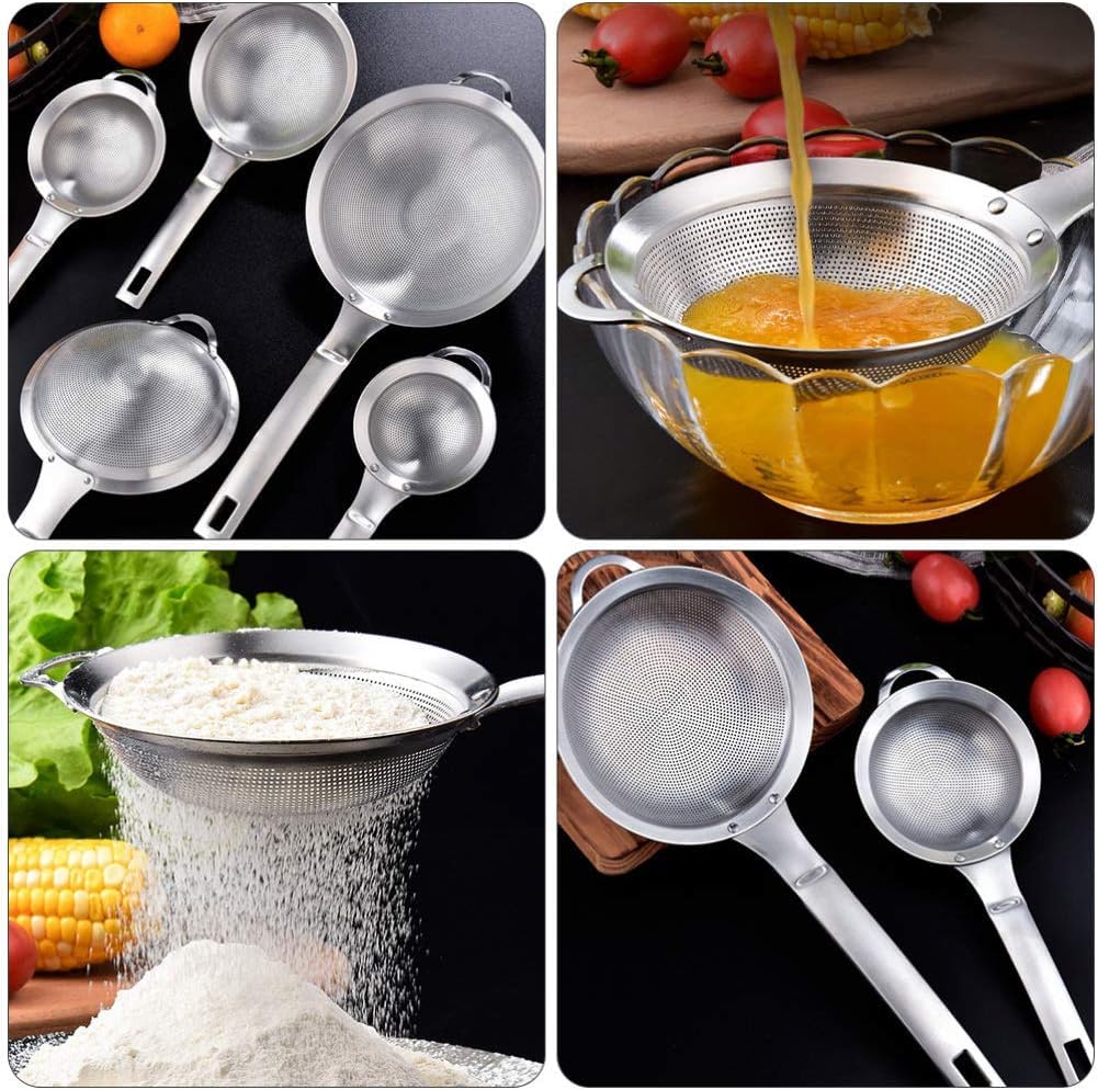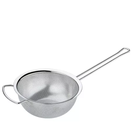 Hello les cuistots ! Une passoire fine, solide et hyper pratique, ça te dit ?\n\nVoici une passoire tout en inox 304, donc inoxydable, résistante à la chaleur et super facile à nettoyer. Elle mesure environ 10 cm de diamètre et 26,5 cm de long avec sa poignée antidérapante.\n\nAvec ses mailles fines (#30), elle est parfaite pour égoutter les frites, les pâtes, les boulettes, mais aussi pour filtrer la farine, rincer le riz, faire du thé, des jus maison ou même tamiser des épices. Plus de résidus qui passent à travers !\n\nEt le petit plus pratique : un crochet à l’extrémité pour l’accrocher dans la cuisine ou l’empiler avec d’autres. Gain de place assuré !\n\nTu peux l’utiliser avec des casseroles, des poêles, des bols… La poignée reste fraîche (ou presque) même au-dessus de l’huile chaude.\n\n🔧 Matériau : acier inox 304\n📏 Dimensions : 10 cm (diamètre) / 26,5 cm (longueur totale)\n🎁 Inclus : 1 passoire\n⚠️ Conseil : pas de grattoirs métalliques pour la nettoyer, un peu d’eau et de savon suffisent.\n\nSi tu veux un accessoire multifonction, durable et pas encombrant, elle est top !