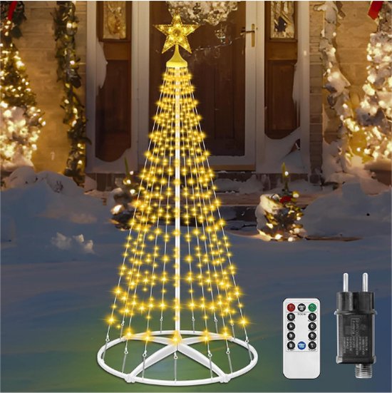 Sapin De Noël LED 184.5 Cm - Cône Métallique Avec 230 LEDs Blanc Chaud, 8 Modes, Pour Intérieur Et Extérieur