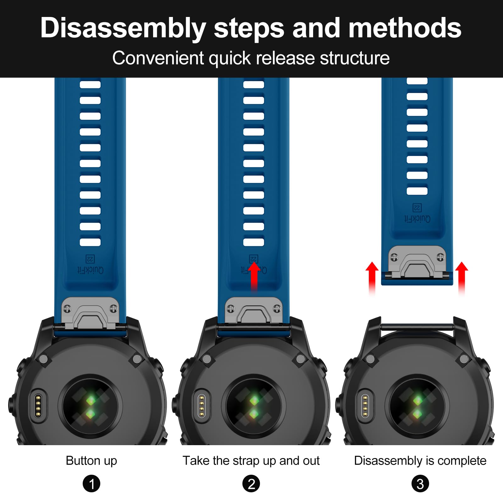 Bracelet Silicone 22mm Compatible Garmin Fenix, Forerunner, Epix, Etc. - Quickfit - Confortable Et Ajustable - Plusieurs Couleurs