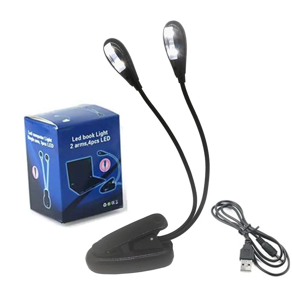 Musicien, étudiant ou simplement amateur de lecture le soir ? Cette lampe de pupitre à clip avec DEUX têtes flexibles est ton alliée ! Chaque tête a 8 LED et deux niveaux de luminosité réglables (doux et plus fort). La lumière est stable, ne clignote pas et protège les yeux.\n\nLe gros plus : tu peux orienter chaque tête indépendamment pour éclairer exactement où tu en as besoin, par exemple les deux pages d'une partition de piano, ou les deux côtés de ton livre. Plus d'ombre gênante ! Elle se clipse facilement sur un pupitre, une table de chevet, un plan de travail...\n\nTu peux l'alimenter soit par USB (câble fourni) branché sur une prise ou un powerbank, soit avec 3 piles AAA (non fournies). Parfaite pour pratiquer ton instrument, lire au lit, bricoler, ou même en voyage/camping. Compacte, légère et vraiment pratique, elle éclaire bien sans prendre de place.
