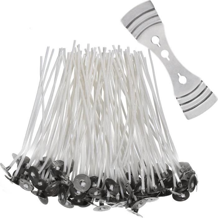 Support Mèche Inoxydable 100 Mèches De Bougie Pré-cirées De 15 Cm - Avec Support Fixe En Inox Pour Fabrication De Bougies DIY (coton Naturel, Sans Plomb) Mèches Bougie DIY