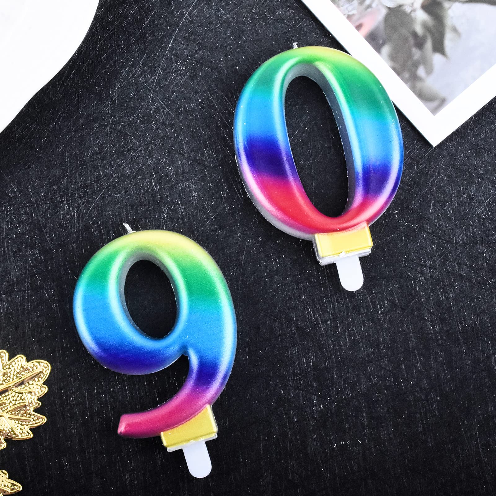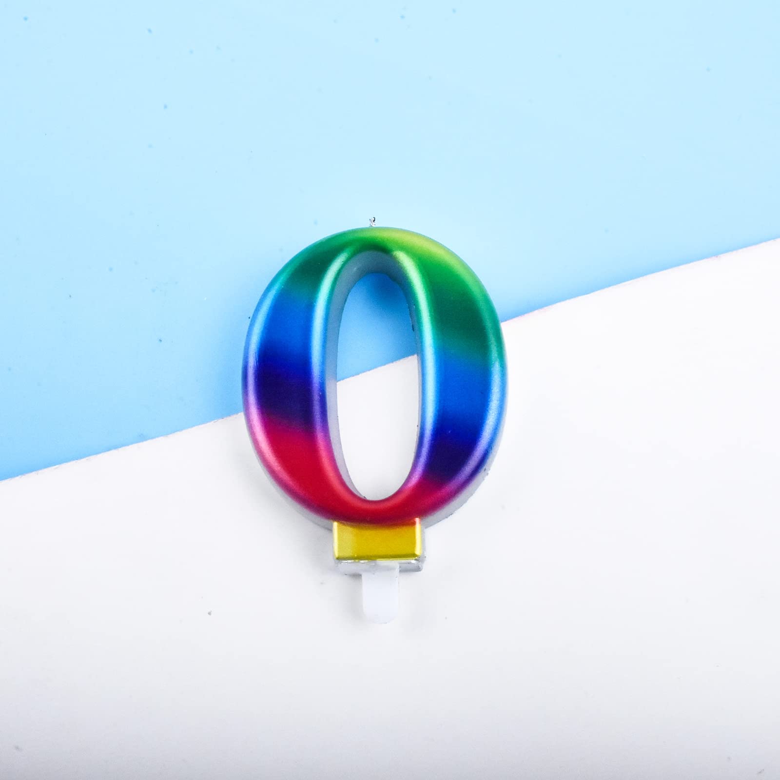 Bougie Anniversaire Chiffre 0 - Arc-en-Ciel - 9 Cm - Cire Haute Qualité Sans Fumée - Pour Fêtes Et Célébrations
