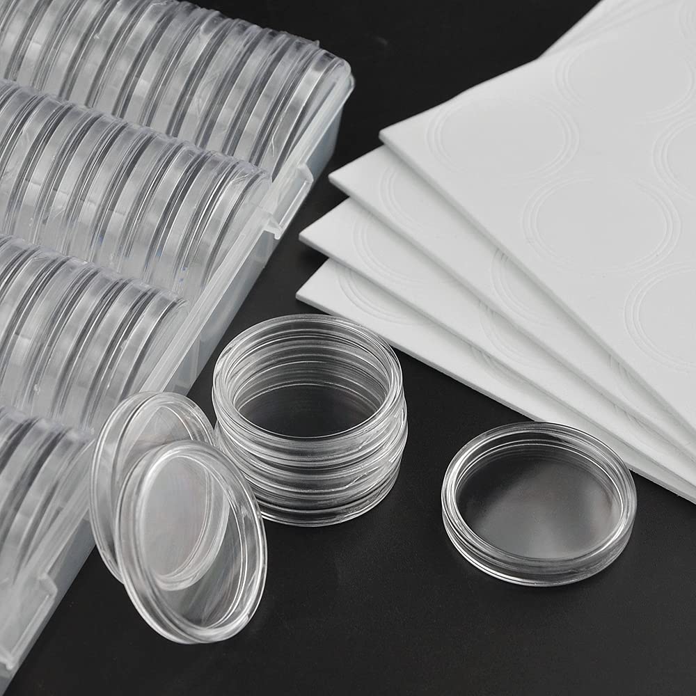 100 Boîtes De Rangement Rondes En Plastique Transparent Pour Pièces De Collection - Diamètre Intérieur 34 Mm