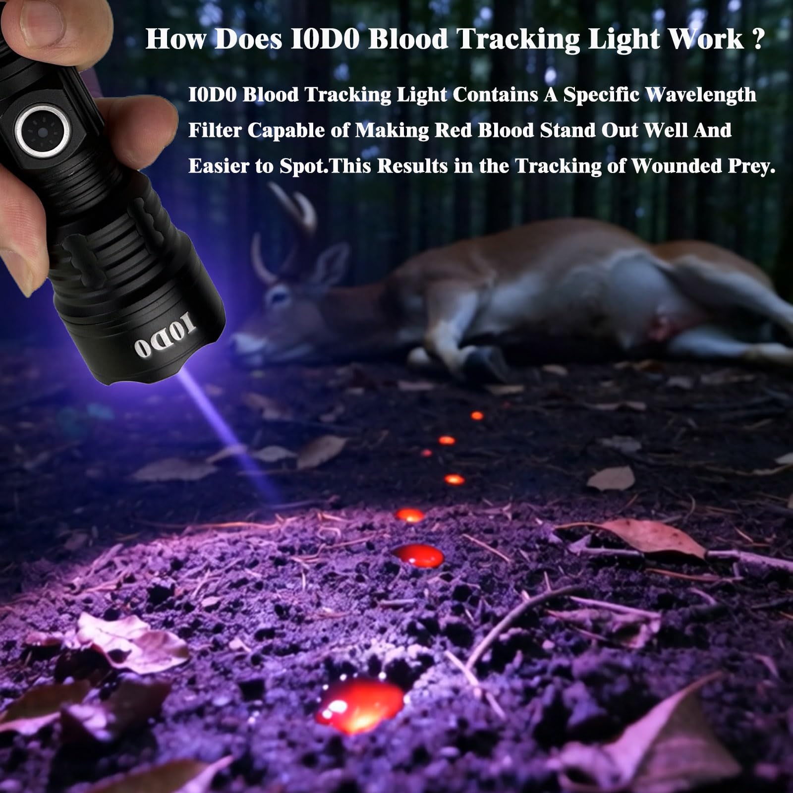 Avec sa LED ultra-puissante de 2000 lumens et une longueur d'onde spécifique (souvent dans les tons rouge/vert/bleu selon les modèles), elle fait « ressortir » les traces de sang sur le sol, même petites et sur des feuilles ou de la terre. Ça change tout par rapport à une lampe normale.
