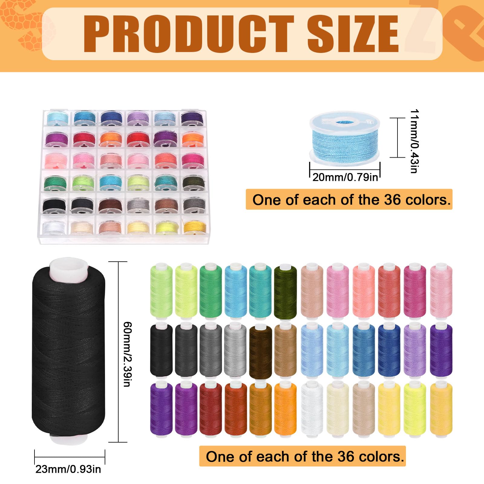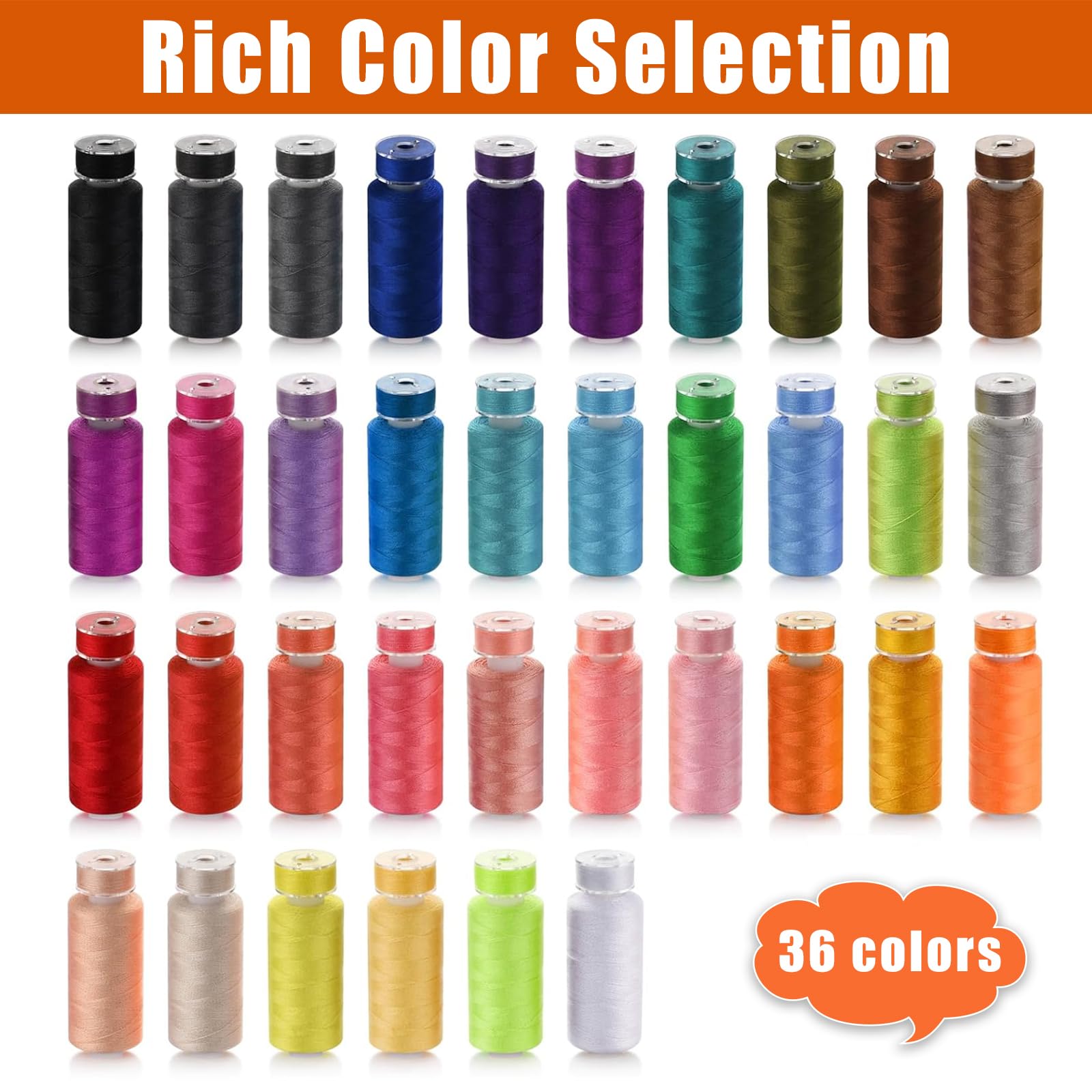 Kit De 72 Bobines De Fil à Coudre Polyester - 36 Couleurs - Pour Machine à Coudre Et Couture à La Main - Skynzor