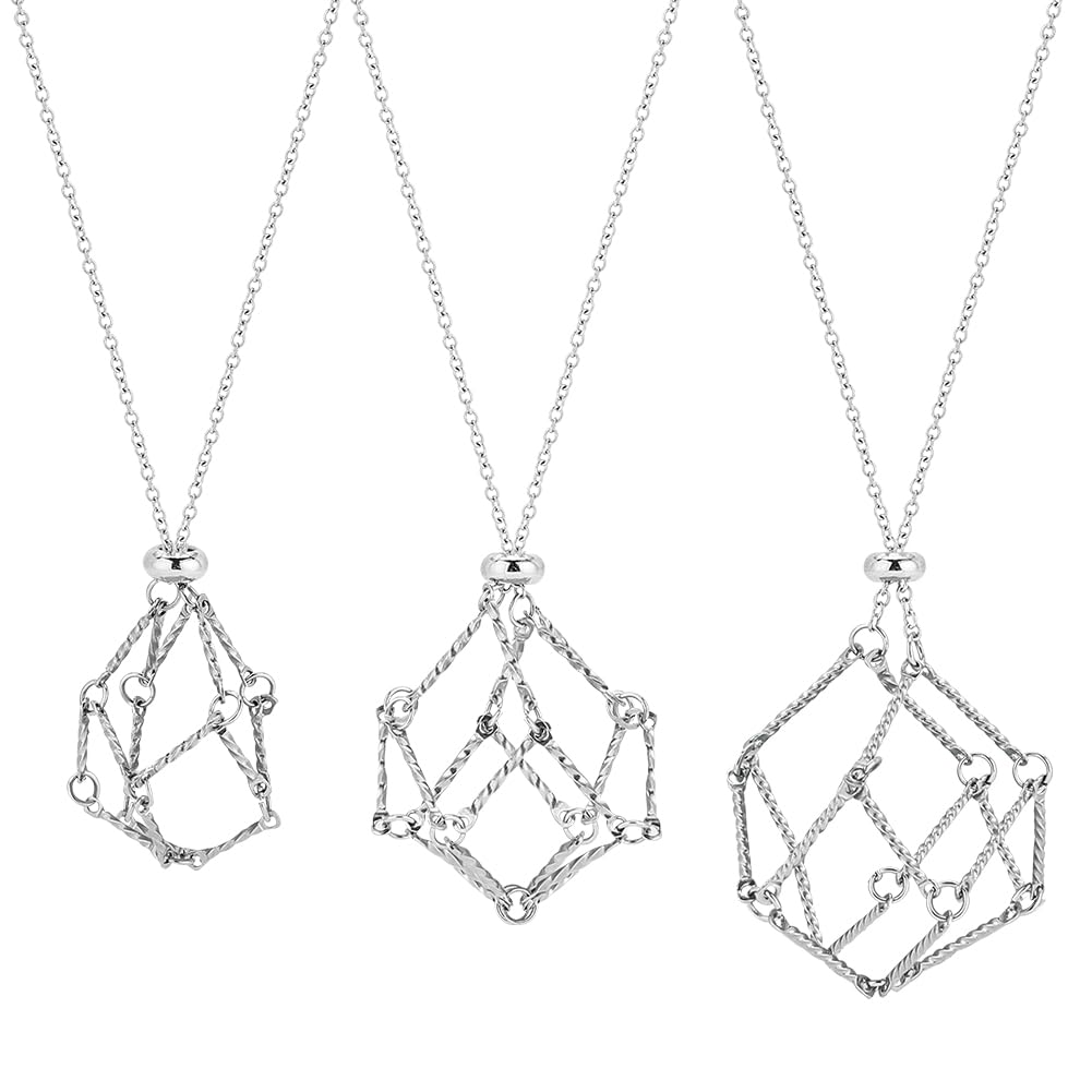Tu fais tes propres bijoux ? Ces colliers porte-pierres sont géniaux pour créer des pendentifs uniques ! Tu reçois 6 colliers en acier inoxydable et laiton, avec des poches en filet de 3 tailles différentes : 5 cm, 6 cm et 8 cm (2 exemplaires par taille).