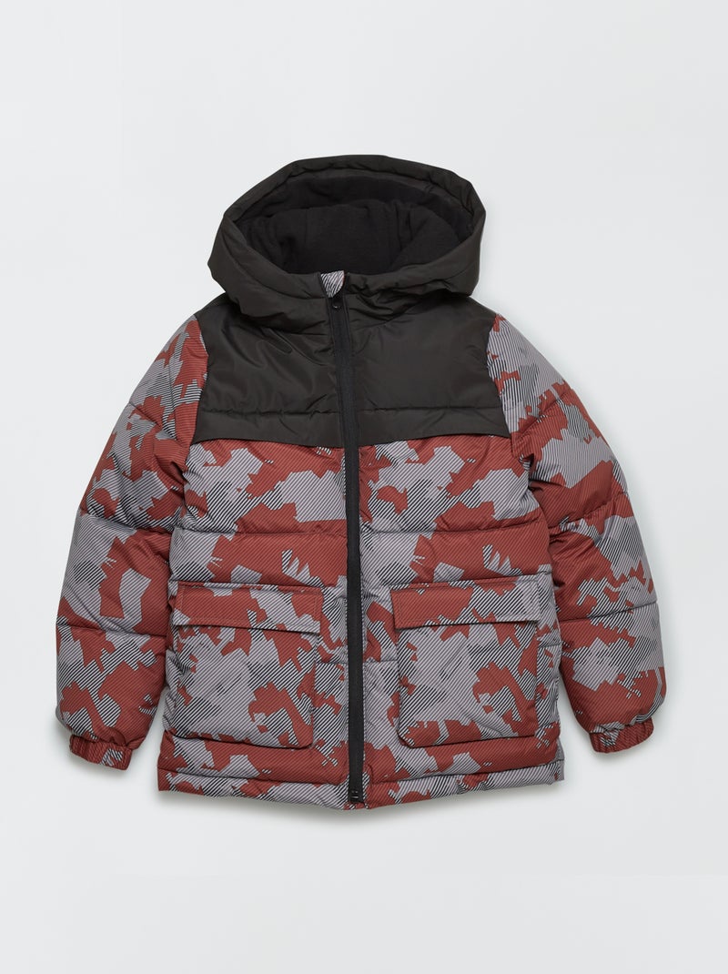Doudoune Hiver Enfant Garçon Camouflage - Capuche, Poches à Rabat, Poignets Tricot, Tailles 2 à 11 Ans, Polyester Polaire