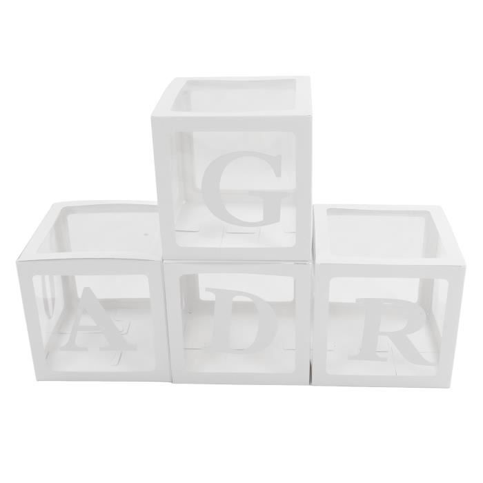Lot De 8 Boîtes à Ballons Blanches 30x30x30 Cm + 52 Lettres - Décoration Fête Anniversaire, Mariage