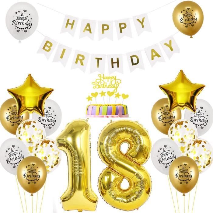Décorations Gâteau 18 Ans - Topper "Happy 18th Birthday", Bougies Chiffres, Cœurs Et Étoiles Scintillants