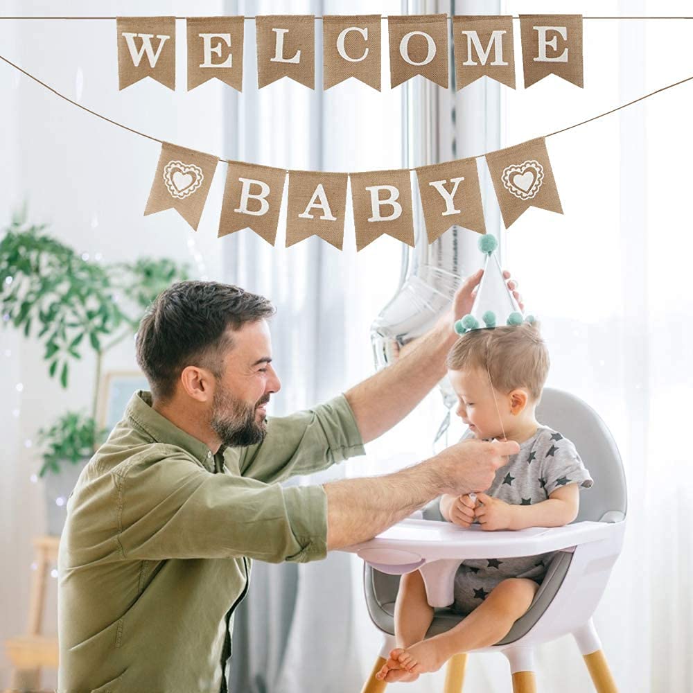 Bannière Baby Shower En Lin Rustique - Guirlande Déco "Bienvenue Bébé" (280 Cm)