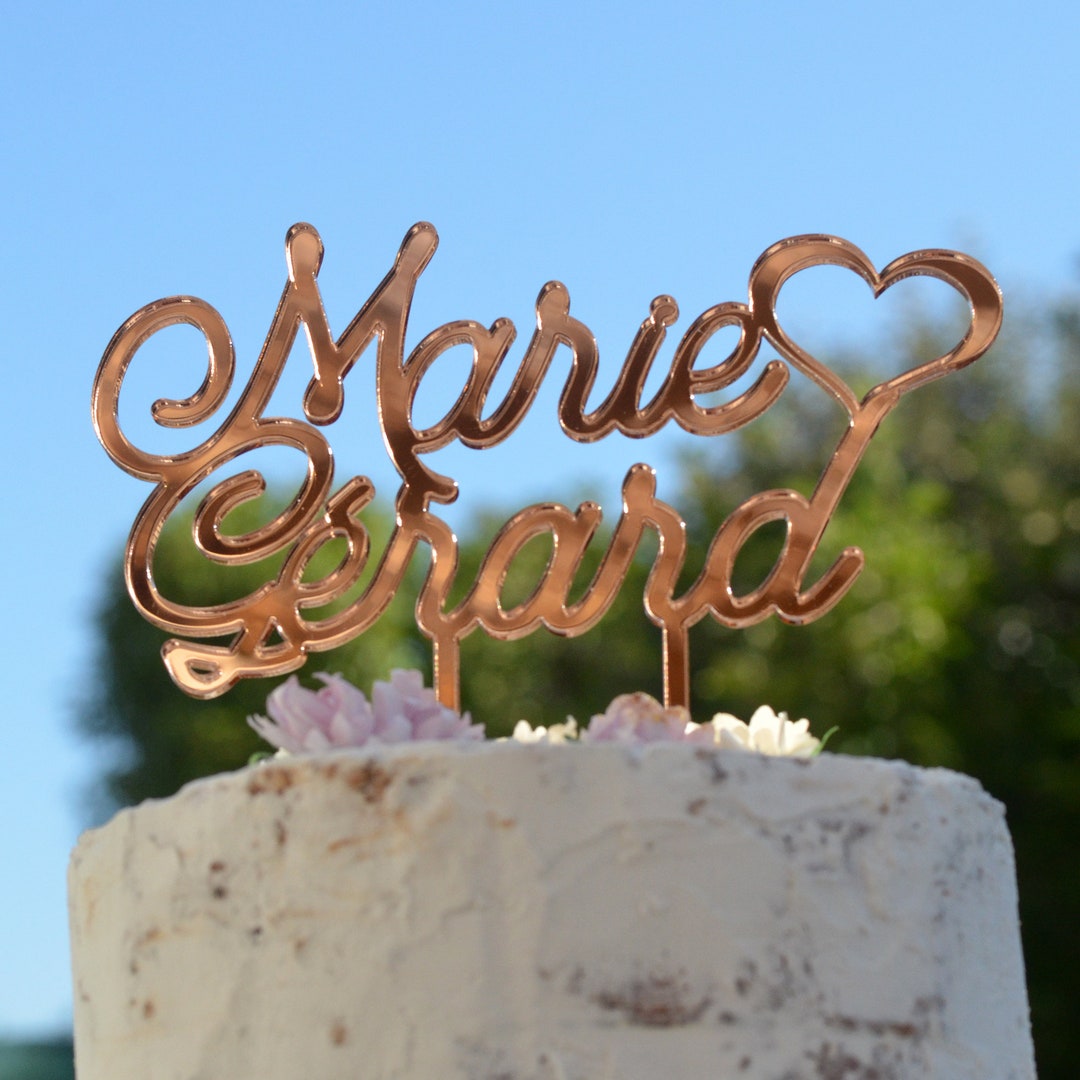 Topper De Gâteau Personnalisé Pour Mariage - Acrylique Avec Prénoms - Tailles S/M/L (12/15/18 Cm) - Décoration Anniversaire, Baptême