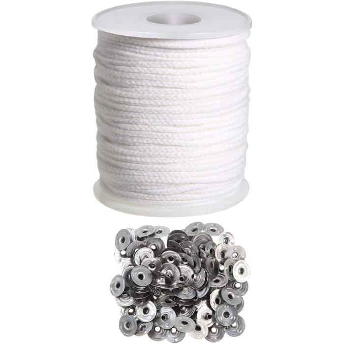 Accessoires Bougie Maison Artisanale Kit Fabrication Bougies DIY - 61m De Mèche, Pot Fondeur 400ml, Supports Métal/bois, Autocollants, Pour Créer Bougies Maison Rouleau Mèche Coton 61 Mètres Supports