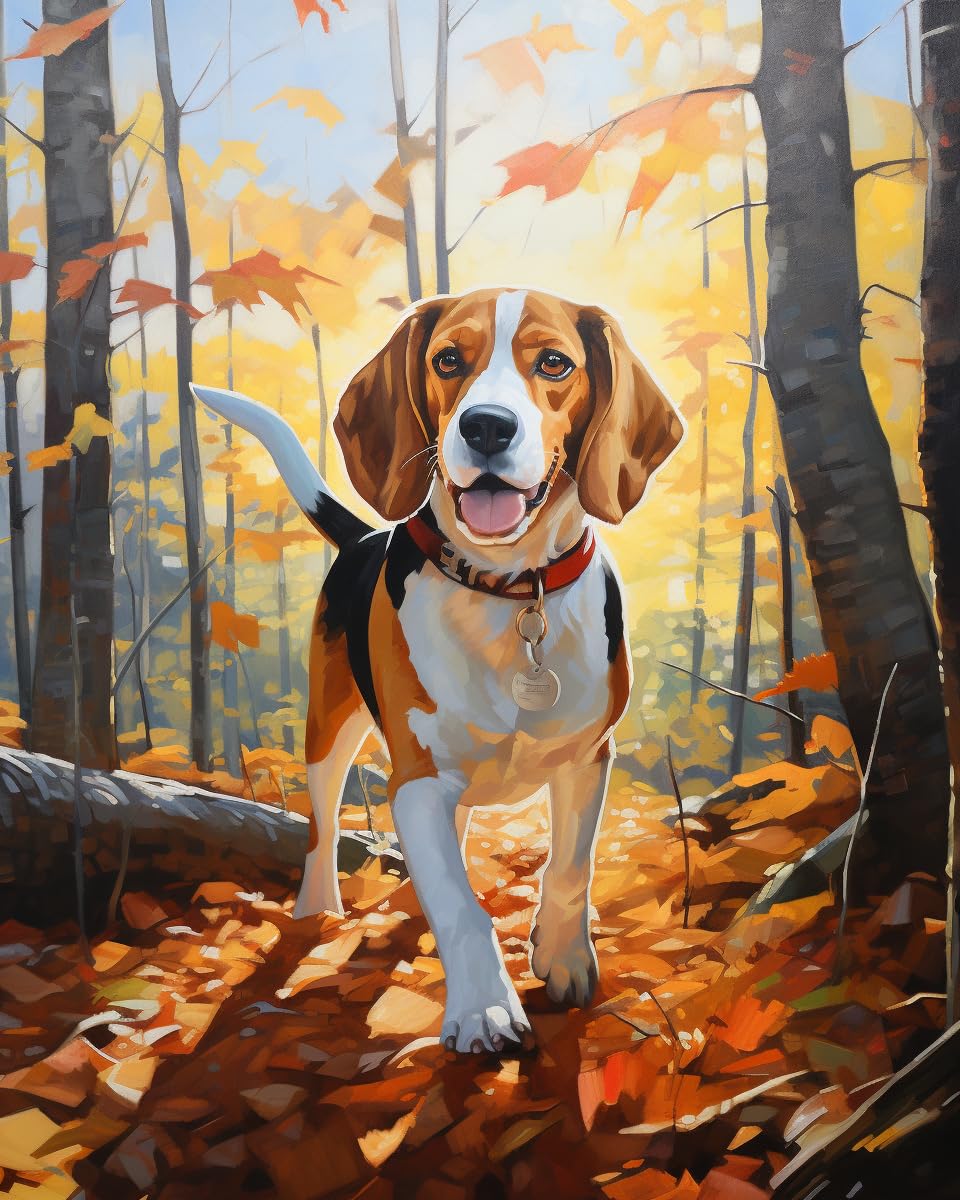 Kit De Broderie Point De Croix Motif Beagle – Toile 11CT Pré-imprimée 30x40 Cm – Pour Débutants Et Adultes – DIY Déco Intérieure