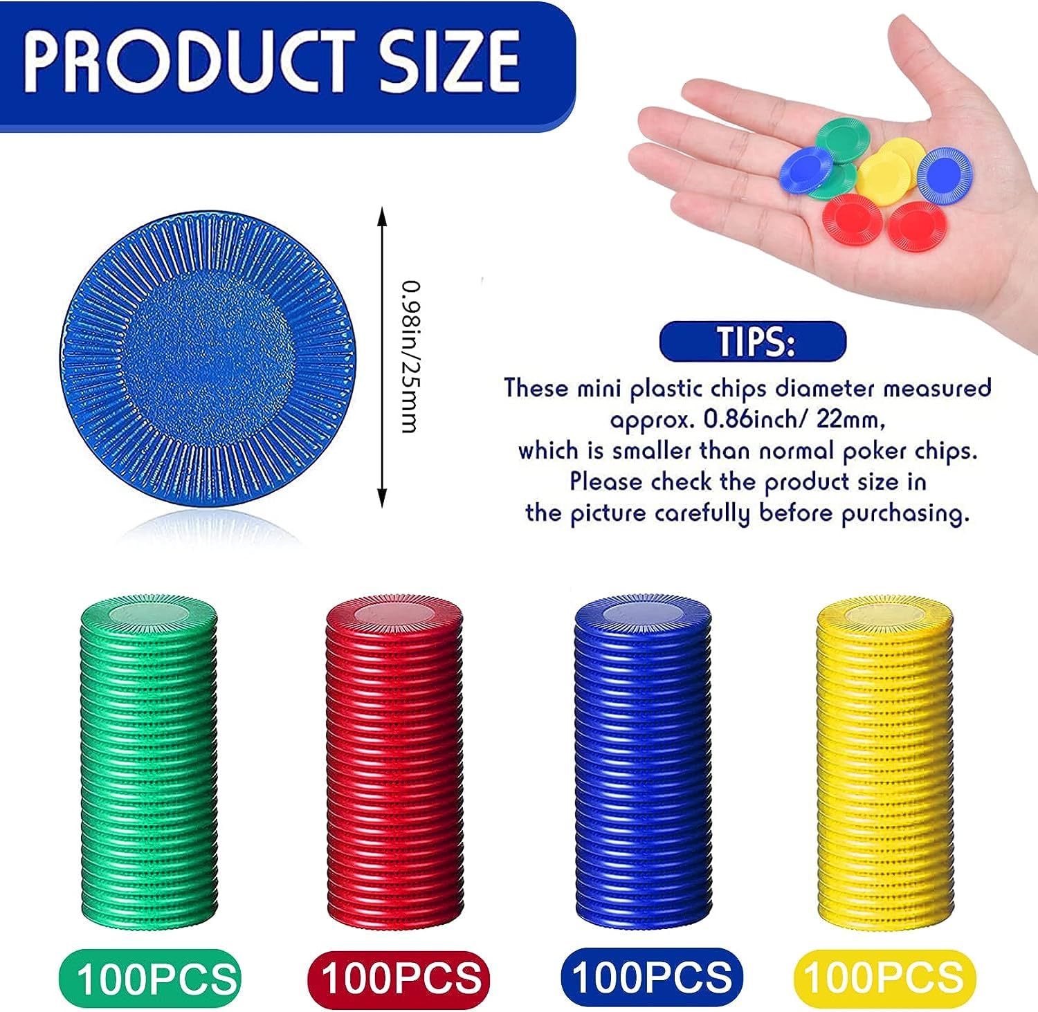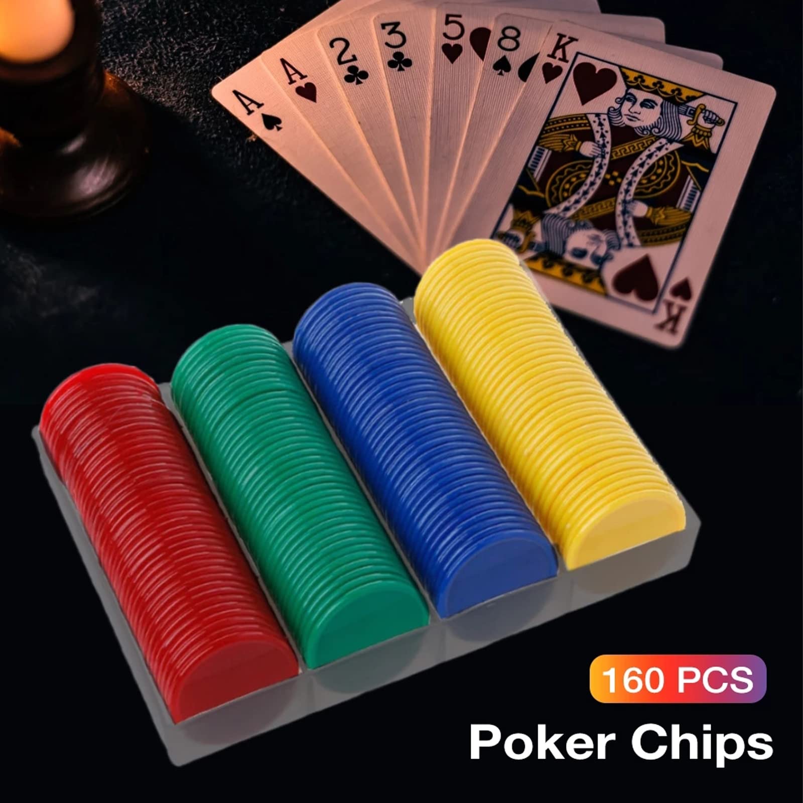 Organisez des soirées jeux en famille avec ces jetons de poker colorés ! Ce lot comprend 160 jetons en plastique rigide, répartis en quatre couleurs vives (jaune, vert, rouge, bleu) avec des chiffres imprimés en doré qui ne s'effacent pas. Chaque jeton pèse environ 0,8 g et mesure 38 mm de diamètre, avec des bords arrondis pour une prise en main facile, même pour les petites mains.