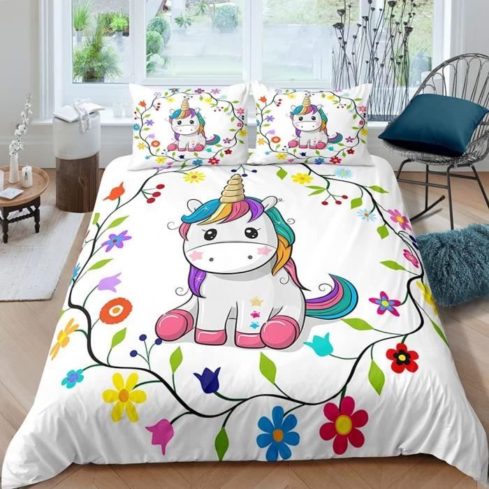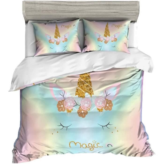 Housse De Couette Licorne 3D – Taille King 240x220 Cm, Avec 2 Taies 50x75 Cm, Microfibre, Fermeture Éclair