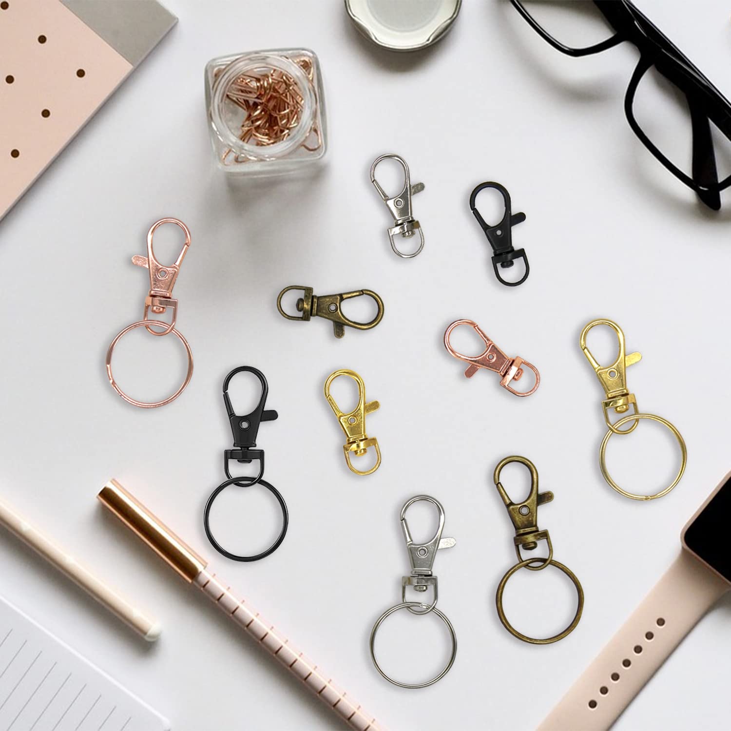 Lot De 60 Accessoires DIY : 30 Crochets Rotatifs + 30 Anneaux Porte-clés - 5 Couleurs - Pour Sacs, Bijoux, Animaux - Alliage